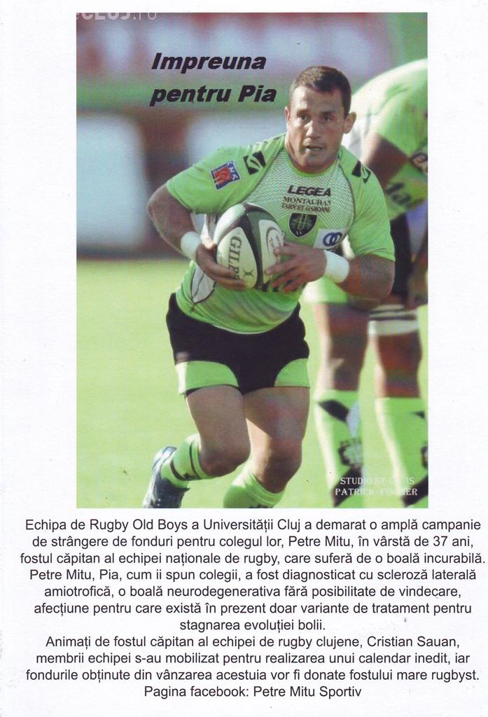 Pe lângă donarea directă de fonduri, a fost realizat un calendar, toate cheltuielile necesare pentru producţia acestuia fiind suportate de un alt mare sportiv clujean, fostul handbalist Mihai Tritean. Calendarul este ilustrat cu imaginile rugby-ştilor clujeni, iar banii rezultaţi din vânzarea acestuia urmează să fie donaţi în contul deschis pentru susţinerea lui Petre Mitu (RO82CECECJ3508RON0872688, deschis la CEC Bank).