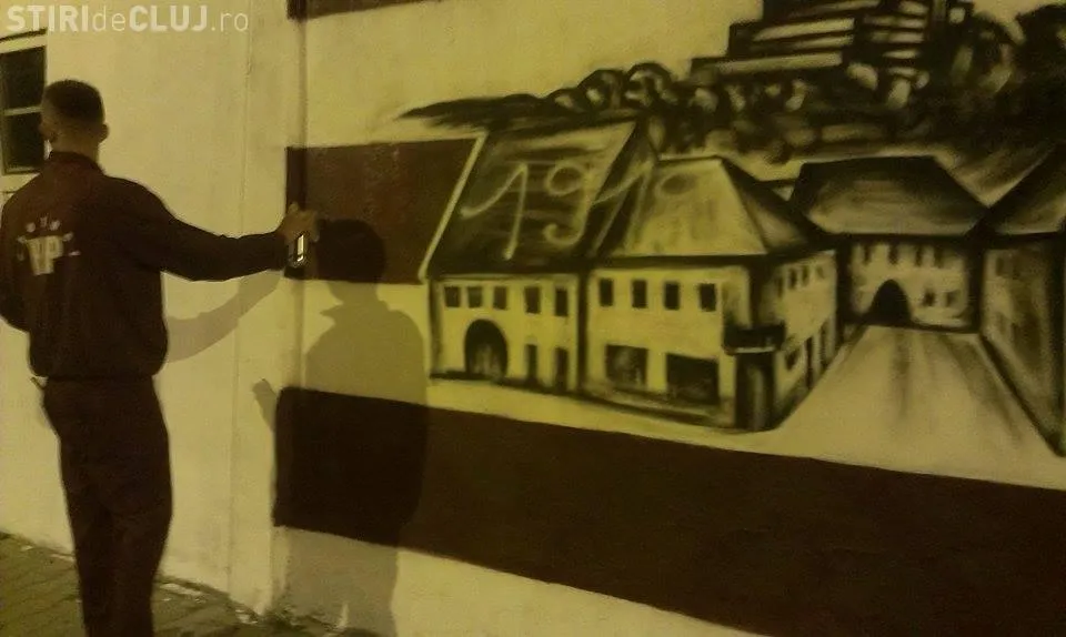 Suporterii CFR Cluj au realizat pe unul dintre zidurile stadionului din Gruia cel mai mare grafitti al unei echipe de fotbal din România.