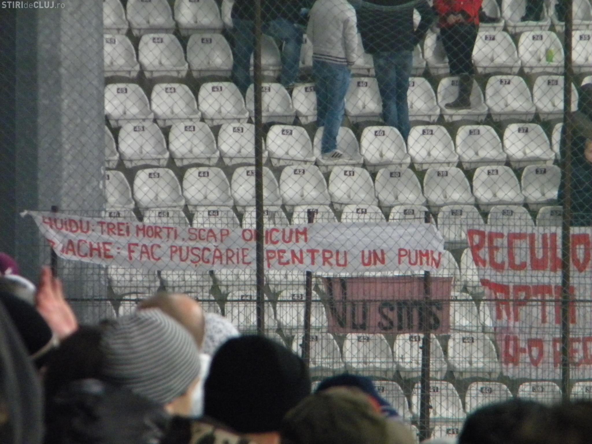 "Huidu: 3 morti. Scapa oricium! Enache face puscarie pentru un pumn", au scris suporterii echipei Dinamo pe un banner.