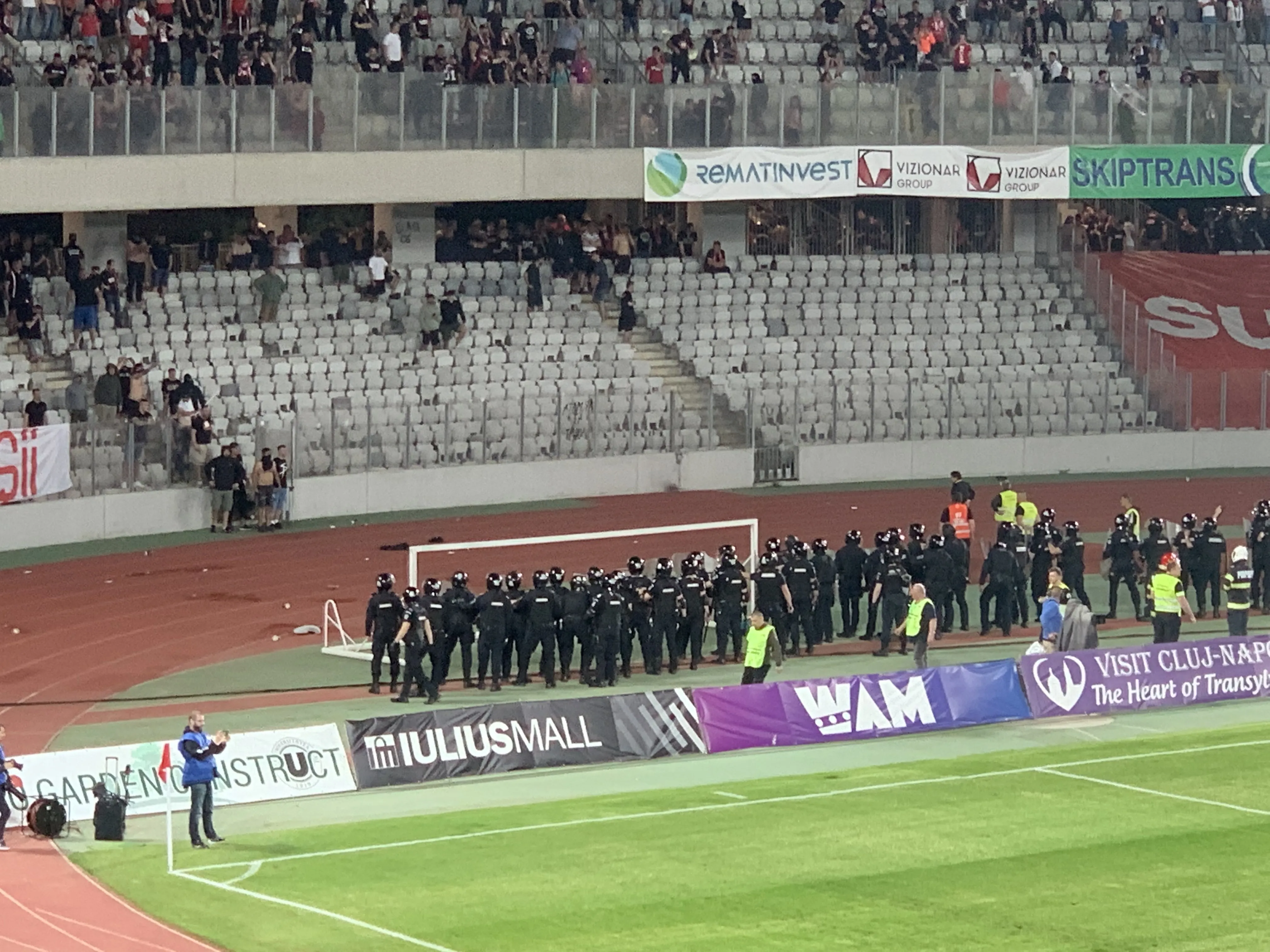 Suporterii Dinamo București au avut altercații cu jandarmii in a doua repriza a meciului cu U Cluj.