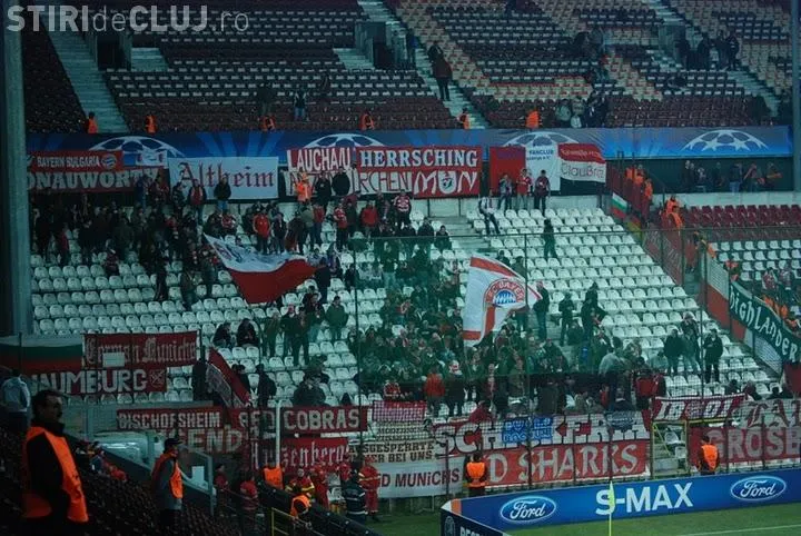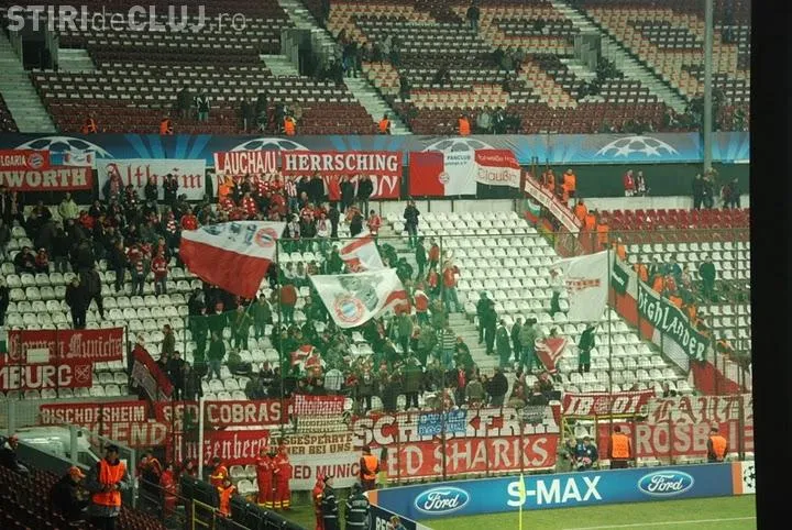 Zeci de suporteri de la Bayern Munchen au populat deja tribunele din Gruia si flutura steagurile cu echipa favorita.