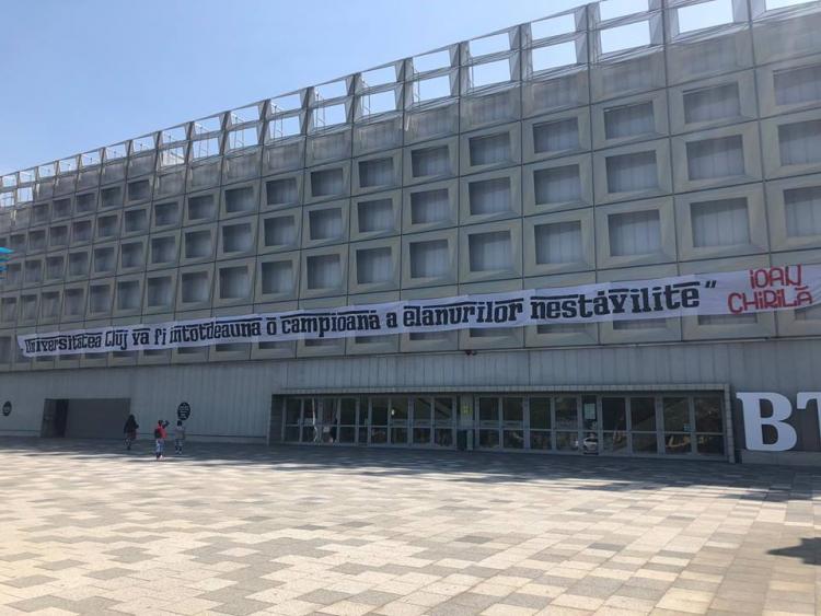 Banner SUPERB pe BT Arena amplasat de suporterii U Cluj - FOTO