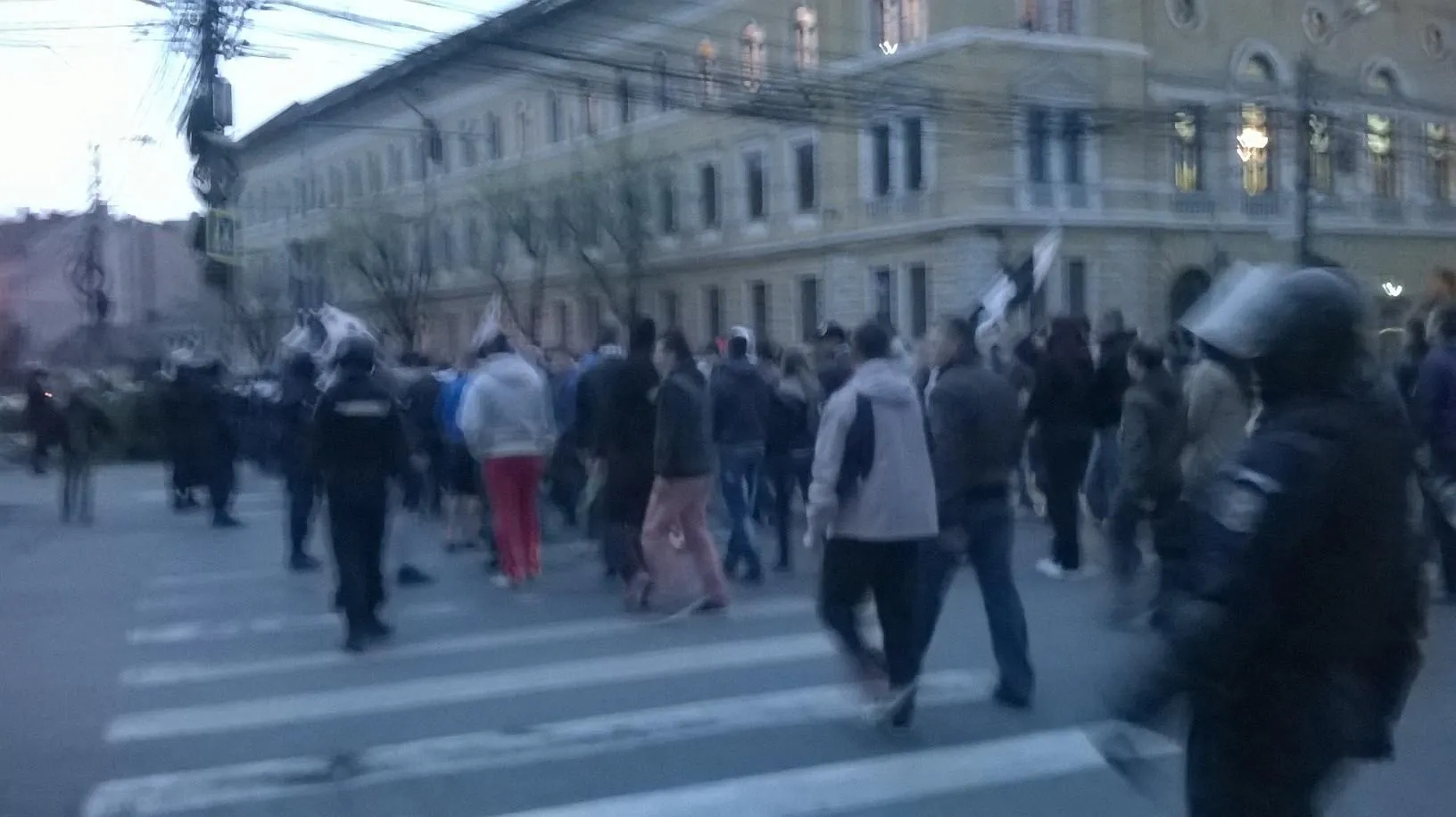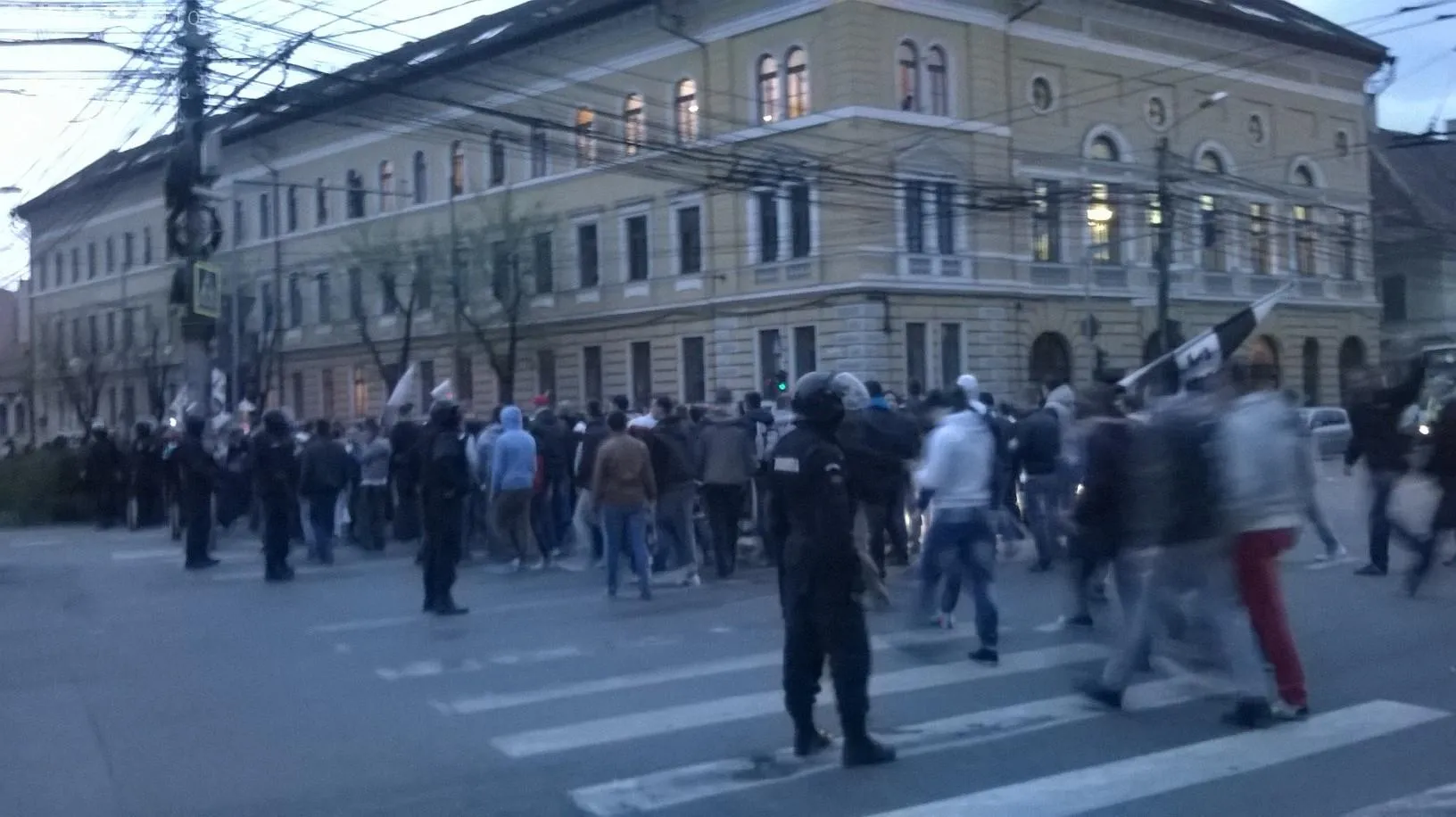 Suporterii U Cluj au pornit în marș spre Gruia, de pe pietonala de pe Bulevardul Eroilor, trecând prin Piața Avram Iancu - Piața Mihai Viteazu și apoi spre stadionul CFR Cluj.
