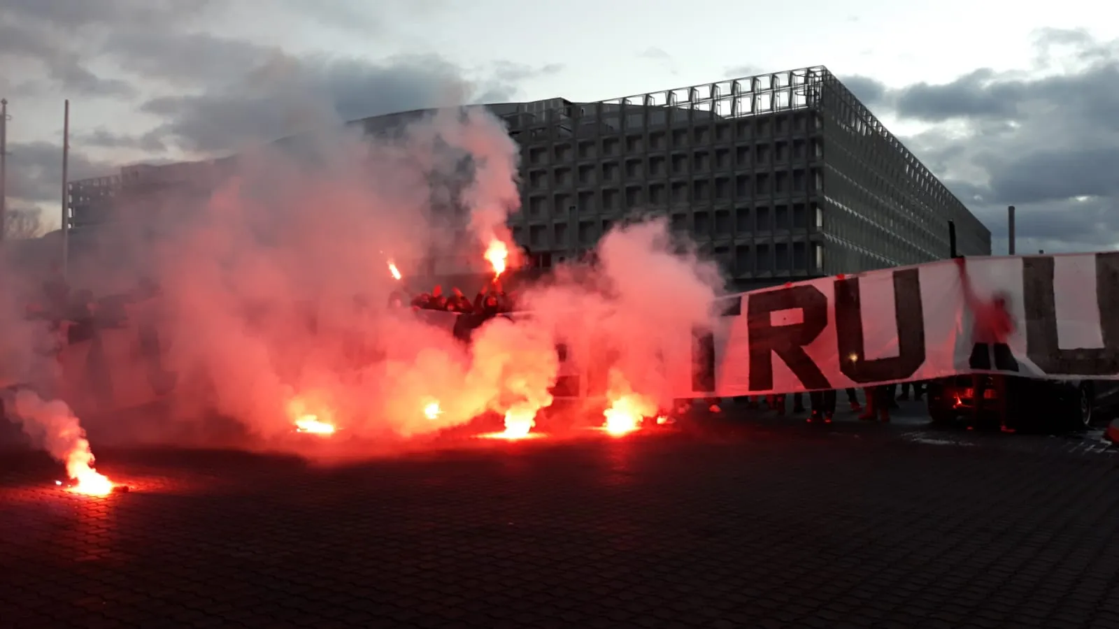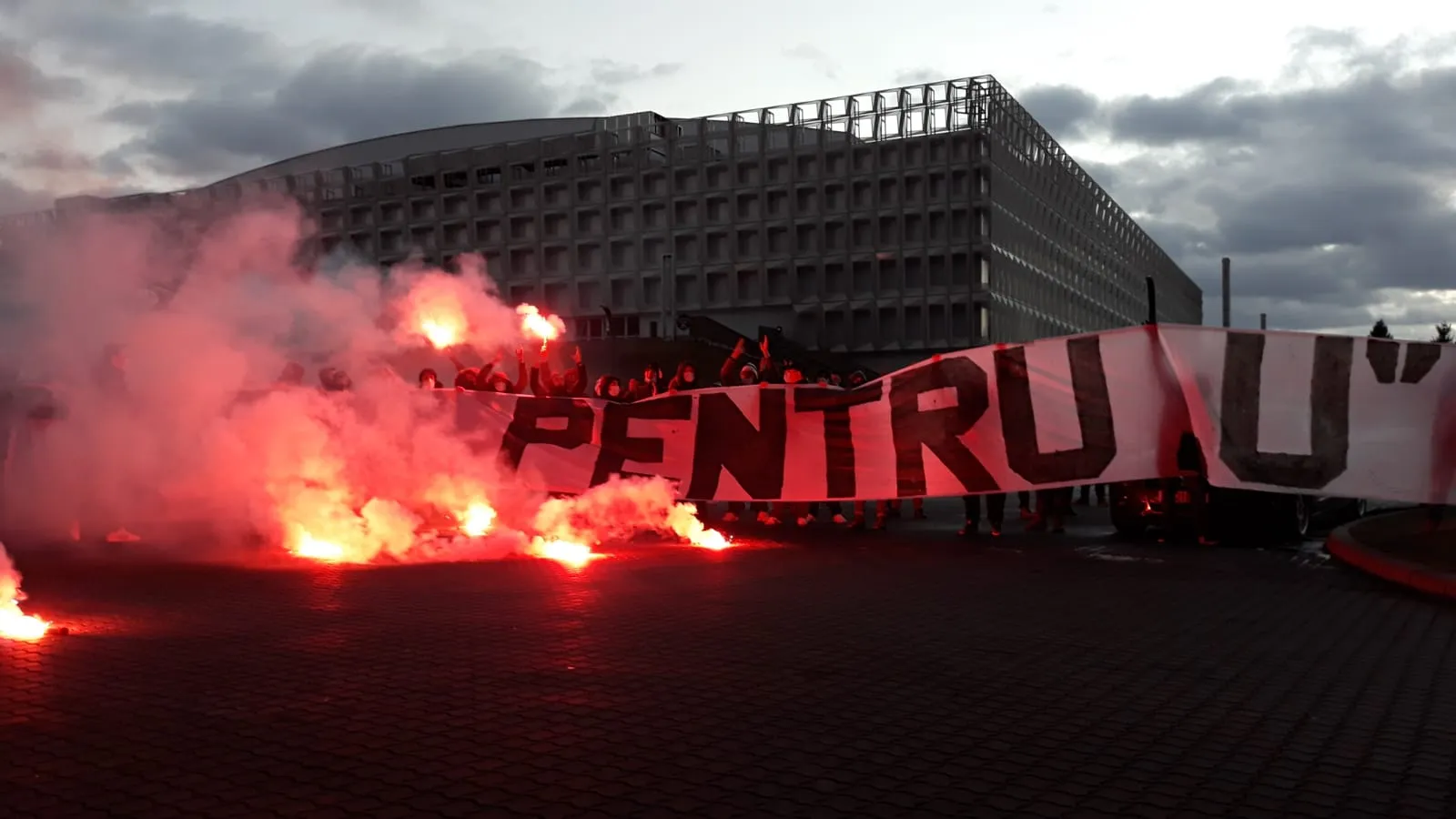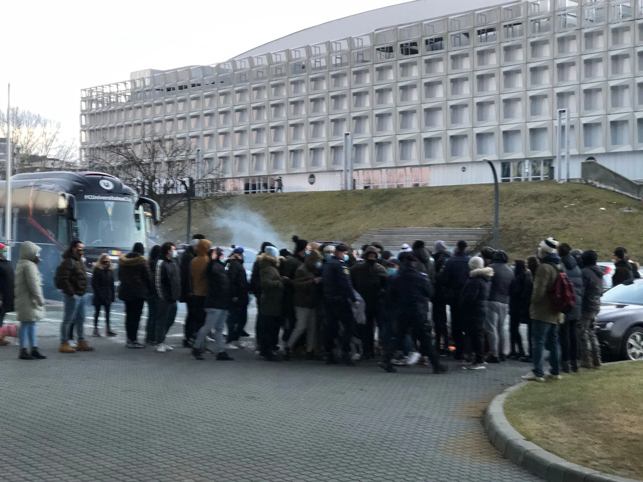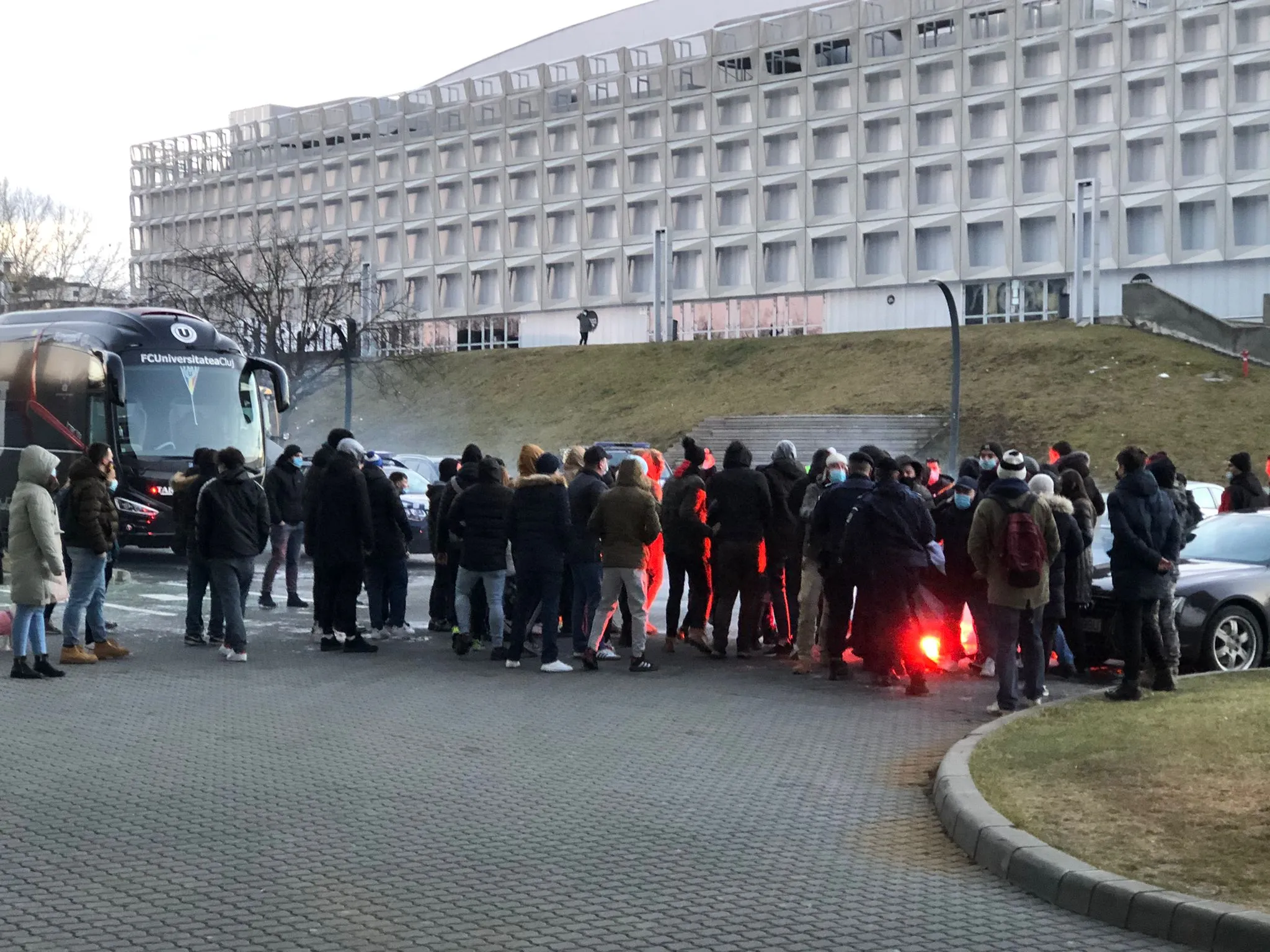 O parte din galeria U Cluj a fost prezentă marți, 18 ianuarie, la reunirea echipei în fața Cluj Arena.