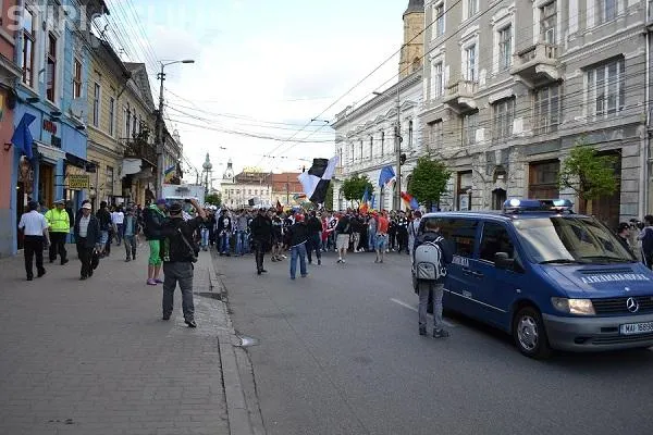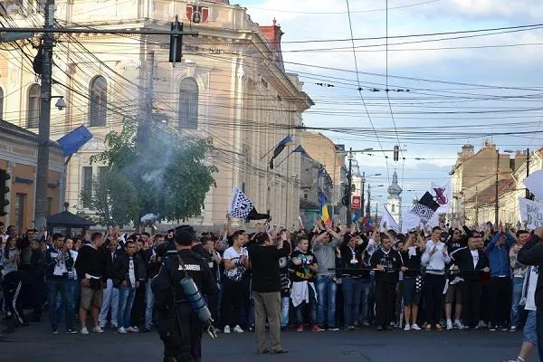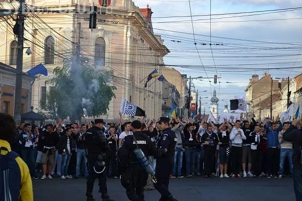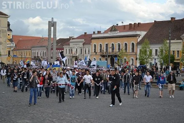 Circa 1000 de fani au pornit intr-un mars de pe Bulevardul Eroilor, unde s-au adunat din mai multe puncte ale orasului. Grupul de suporteri a pornit pe traseul Piata Unirii - strada Memorandumului - Calea Motilor - strada George Cosbuc - stadionul Cluj Arena.