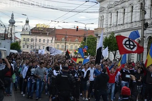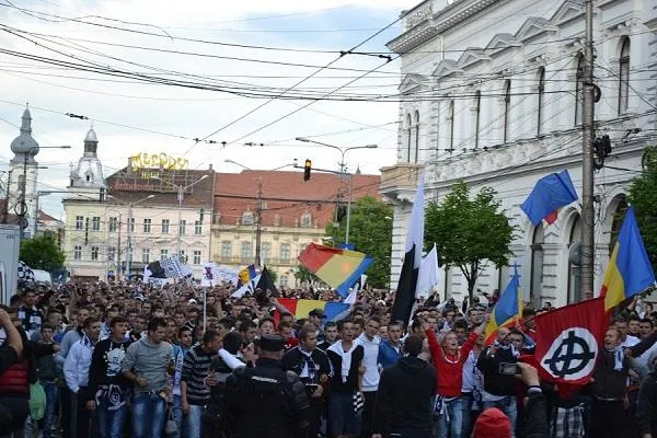 Suporterii U Cluj au facut spectacol pe strazile Clujului, in drum spre stadionul Cluj Arena.