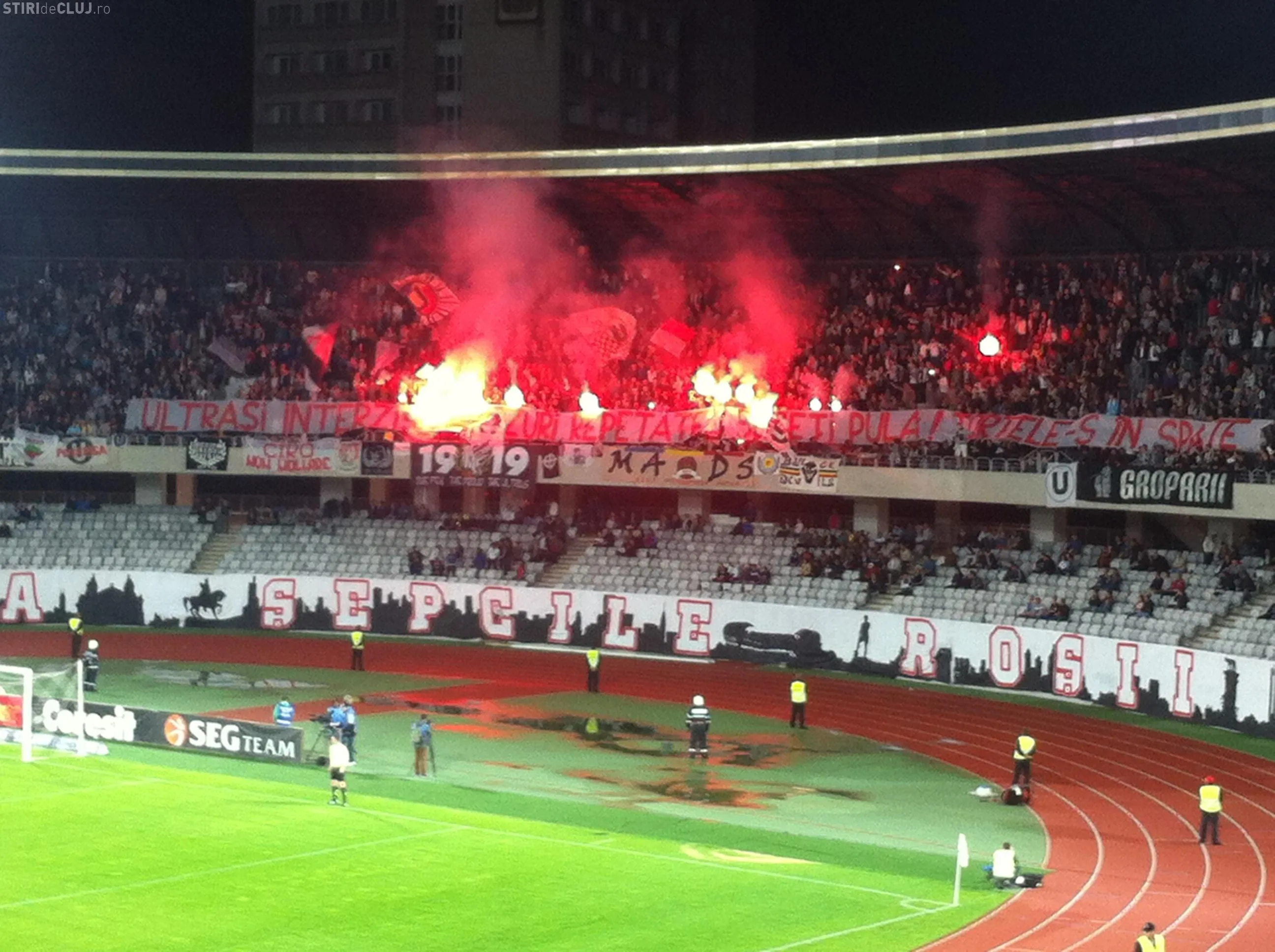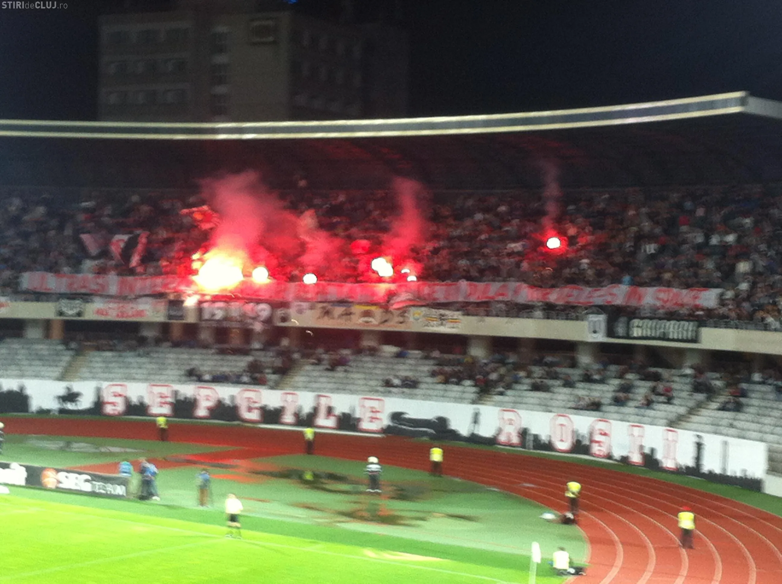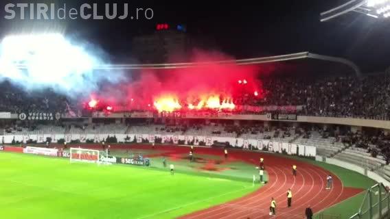 Suporterii U Cluj au pus în scenă un moment special la începutul meciului cu Steaua. Zeci de fumigene au fost aprinse și au creat o atmosferă de meci mare.