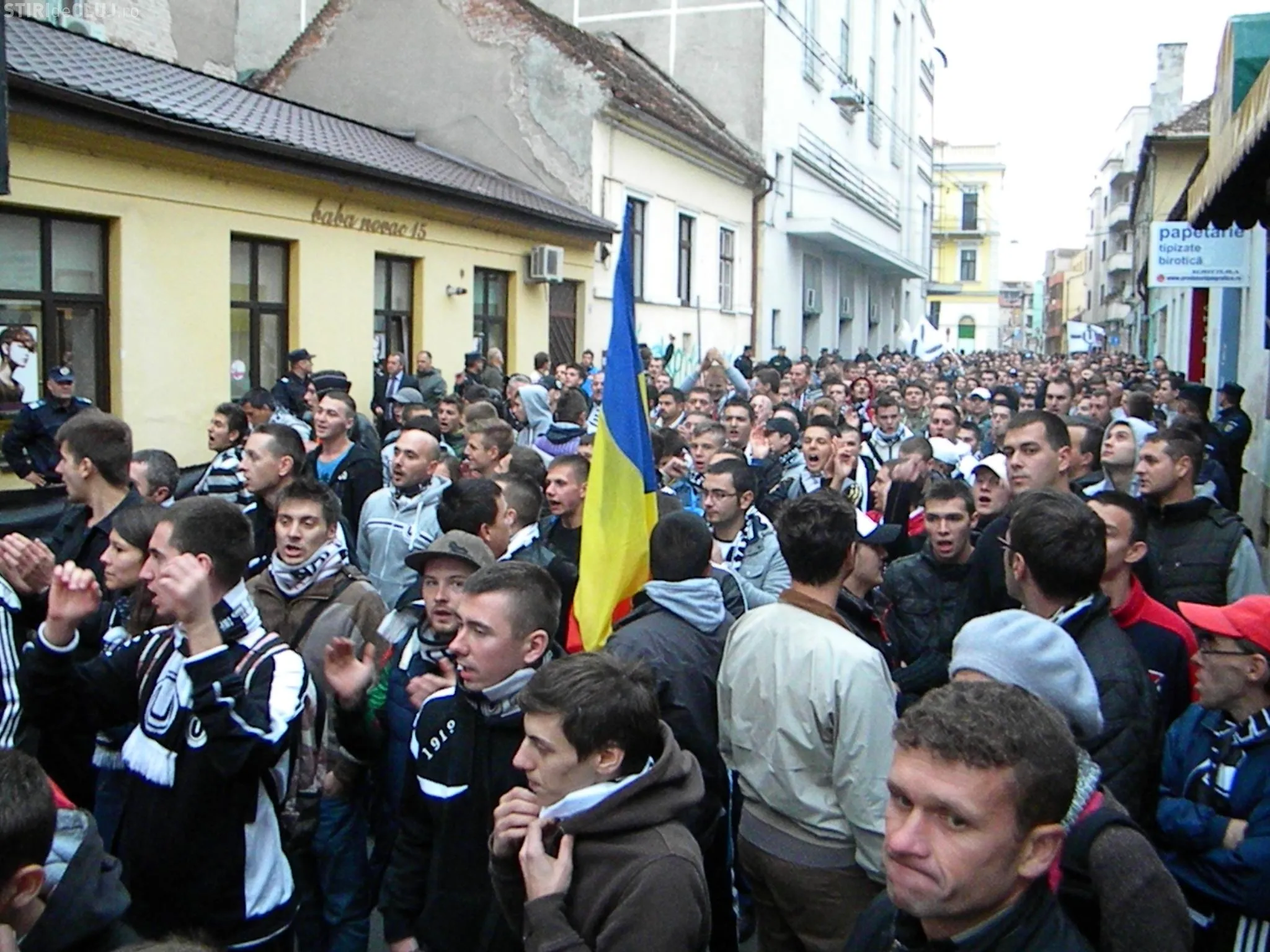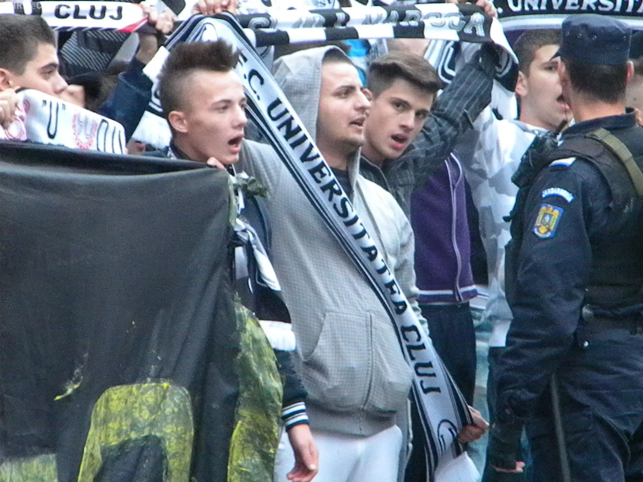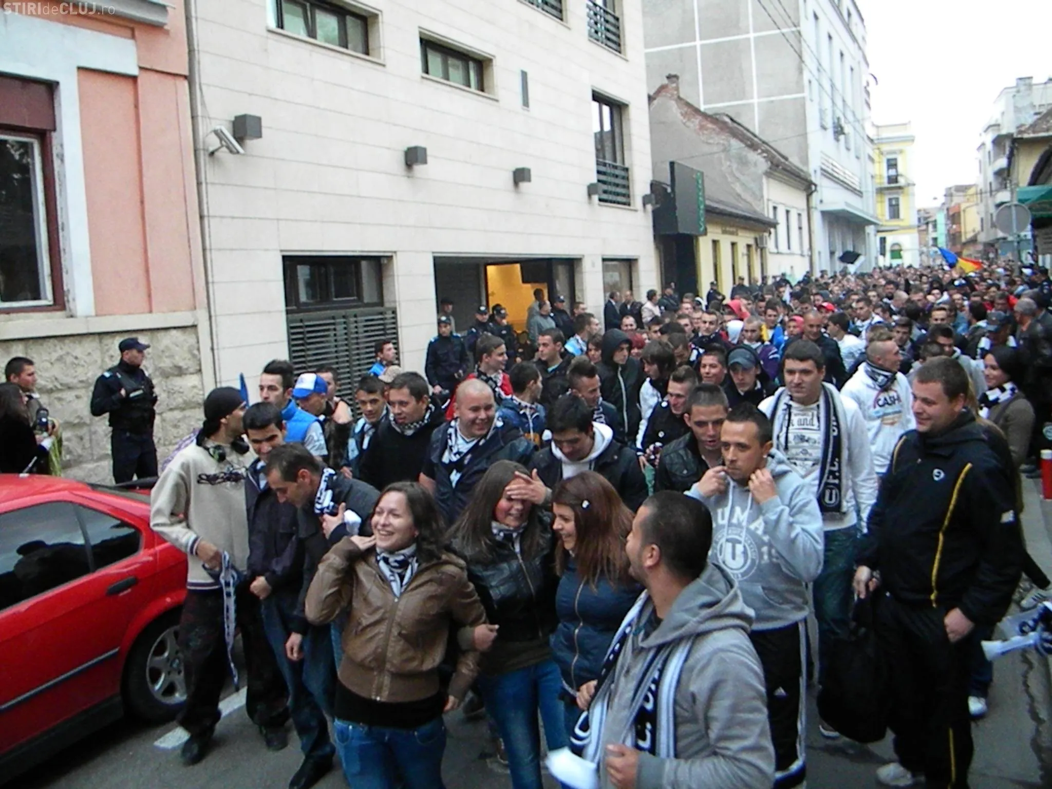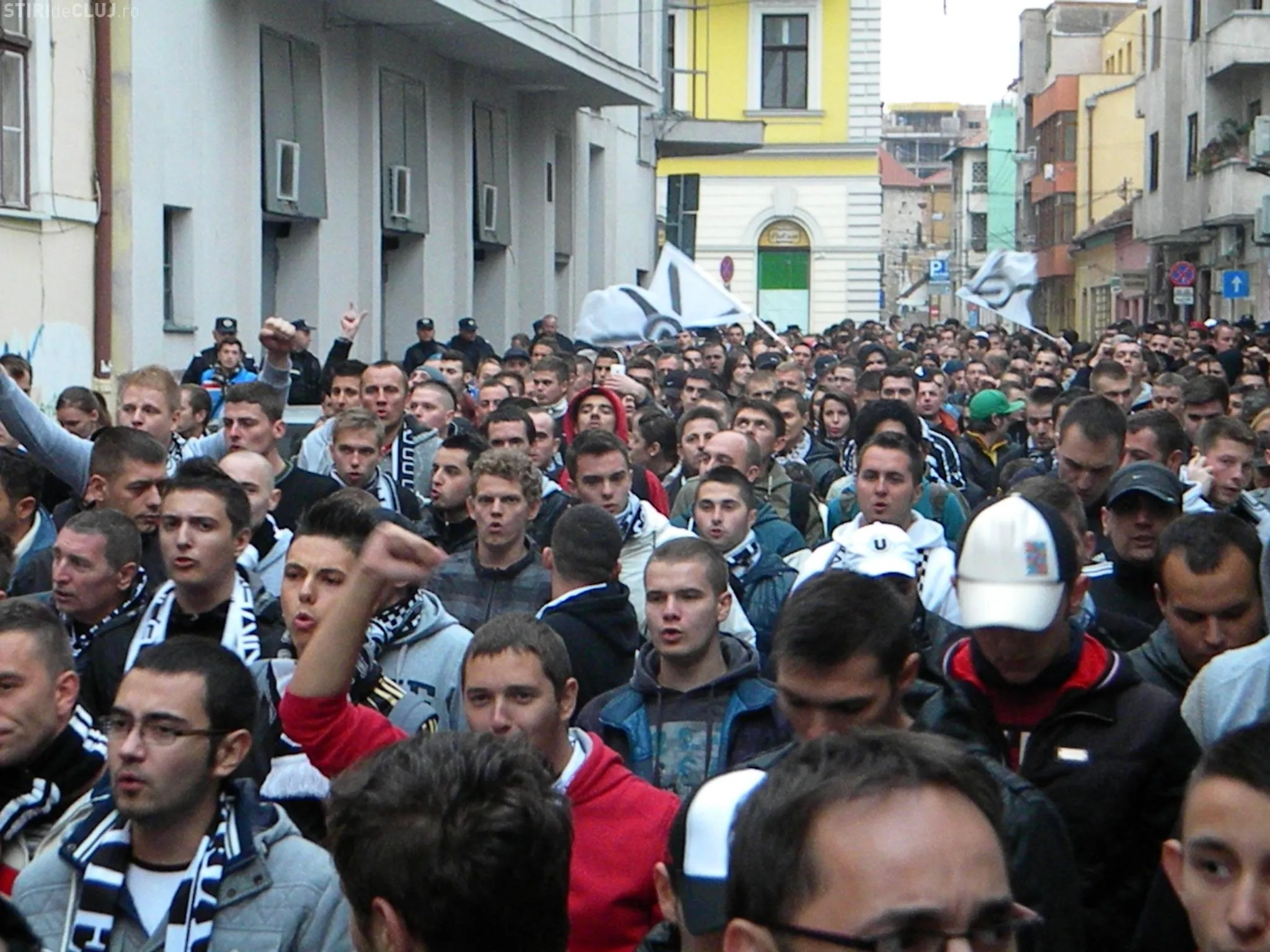 Suporterii U Cluj au organizat un marș prin centrul orașului, încercând să sensibilizeze autoritățile în ceea ce privește soarta echipei. Clujenii s-au arătat oripilați când au auzit noua lor scandare plină de injurii.