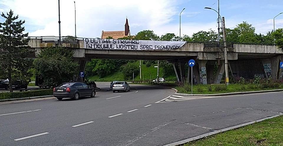 Suporterii U Cluj, banner pe podul de la Calvaria. Începe FEBRA promovării - FOTO