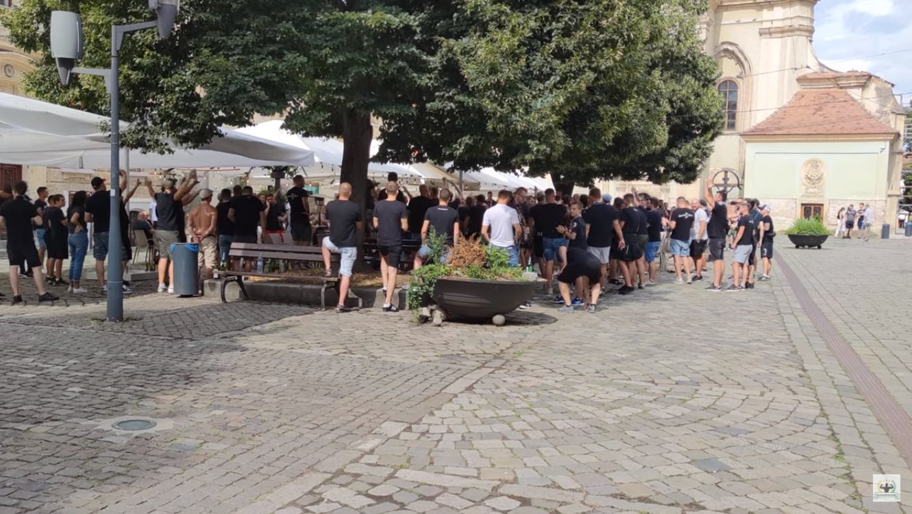 Suporterii U Cluj s-au adunat în Piața Muzeului, înainte de meciul cu Timișoara, unde au fost provocați de doi ”feroviari”.