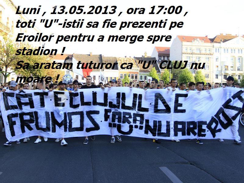 ”Toți U -iști pe Eroilor și să pornim spre meci ... Să traversăm centru și să le arătăm tuturor că U nu moare! Că U trăiește prin spiritul și vocea noastră!”, scriu suporterii pe Facebook.
