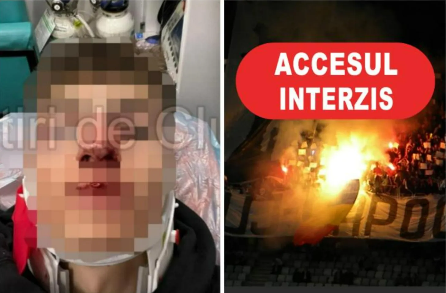 Suporterul U Cluj care a desfigurat un fan CFR Cluj, aruncându-i o sticlă în față, pus sub control judiciar. Are interdicție să se apropie de stadioane