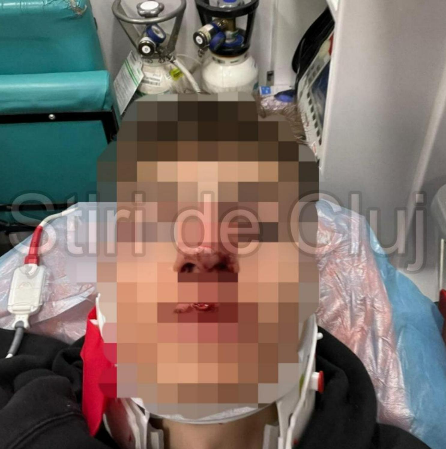 Tânărul de 19 ani a fost rănit grav în zona feței, fiind transportat de urgență la spital. A suferit o fractură de piramidă nazală.