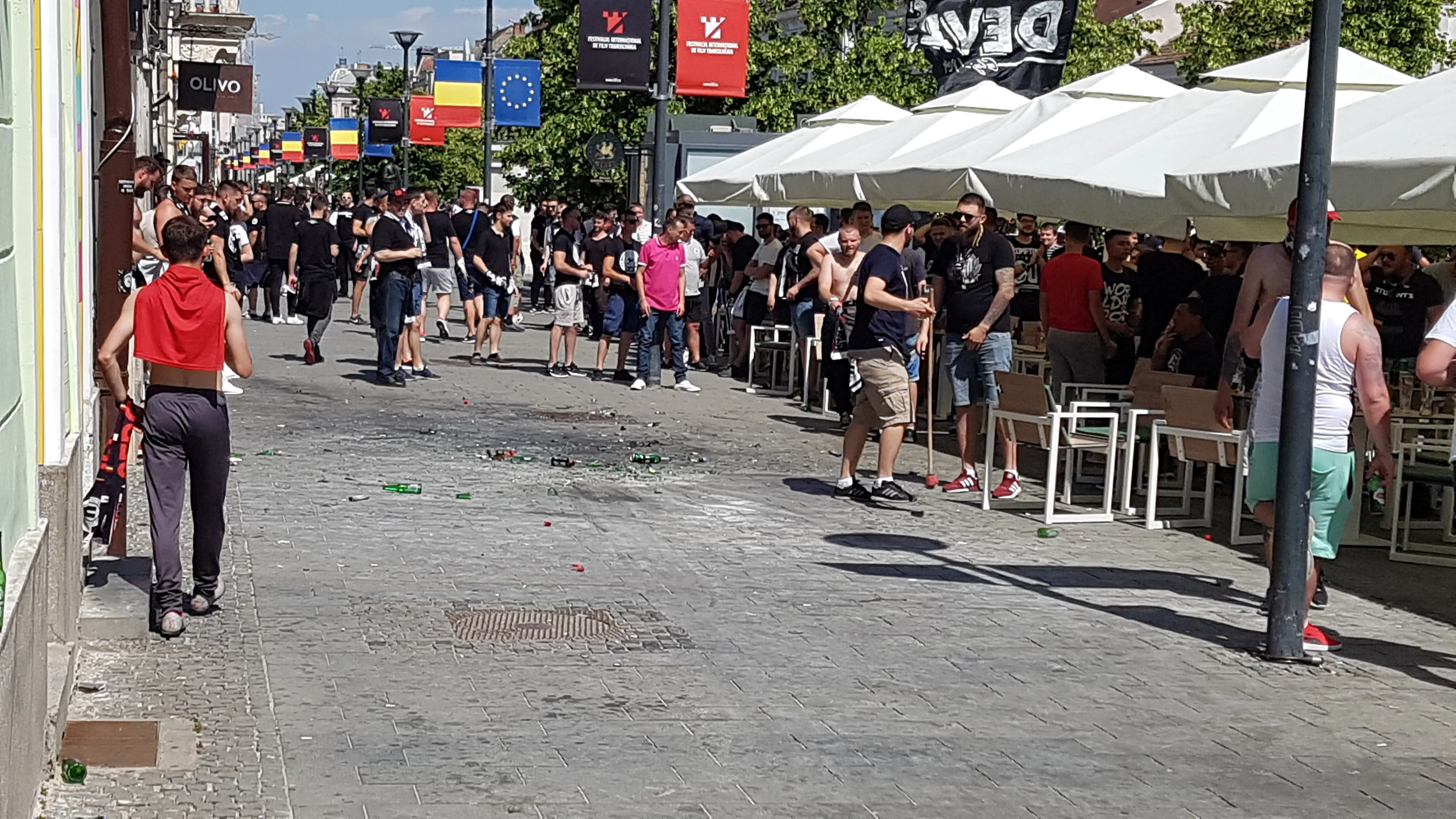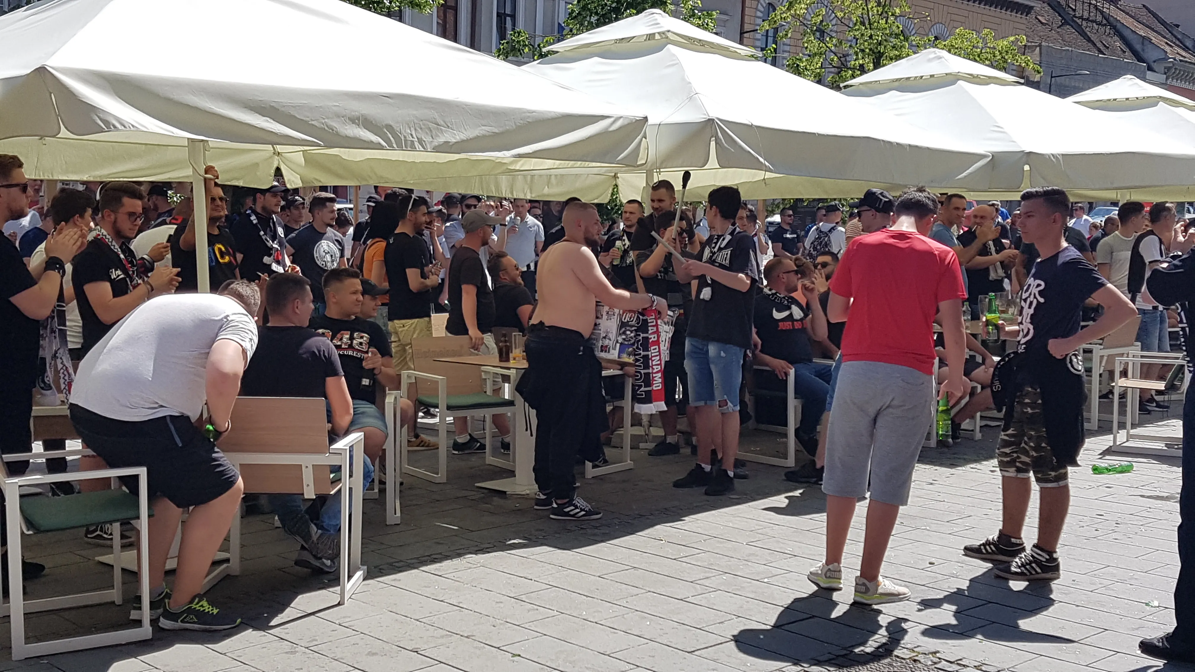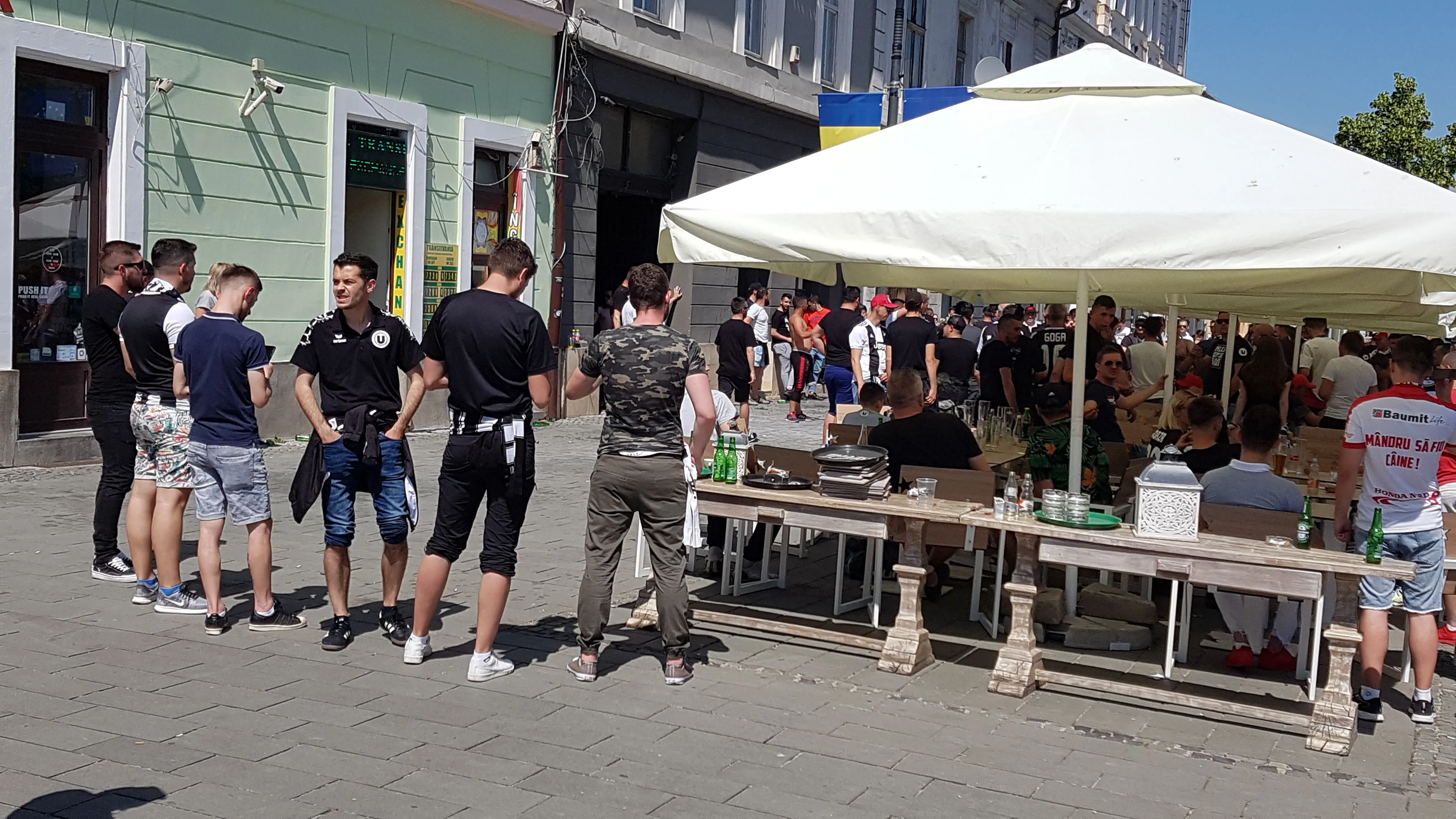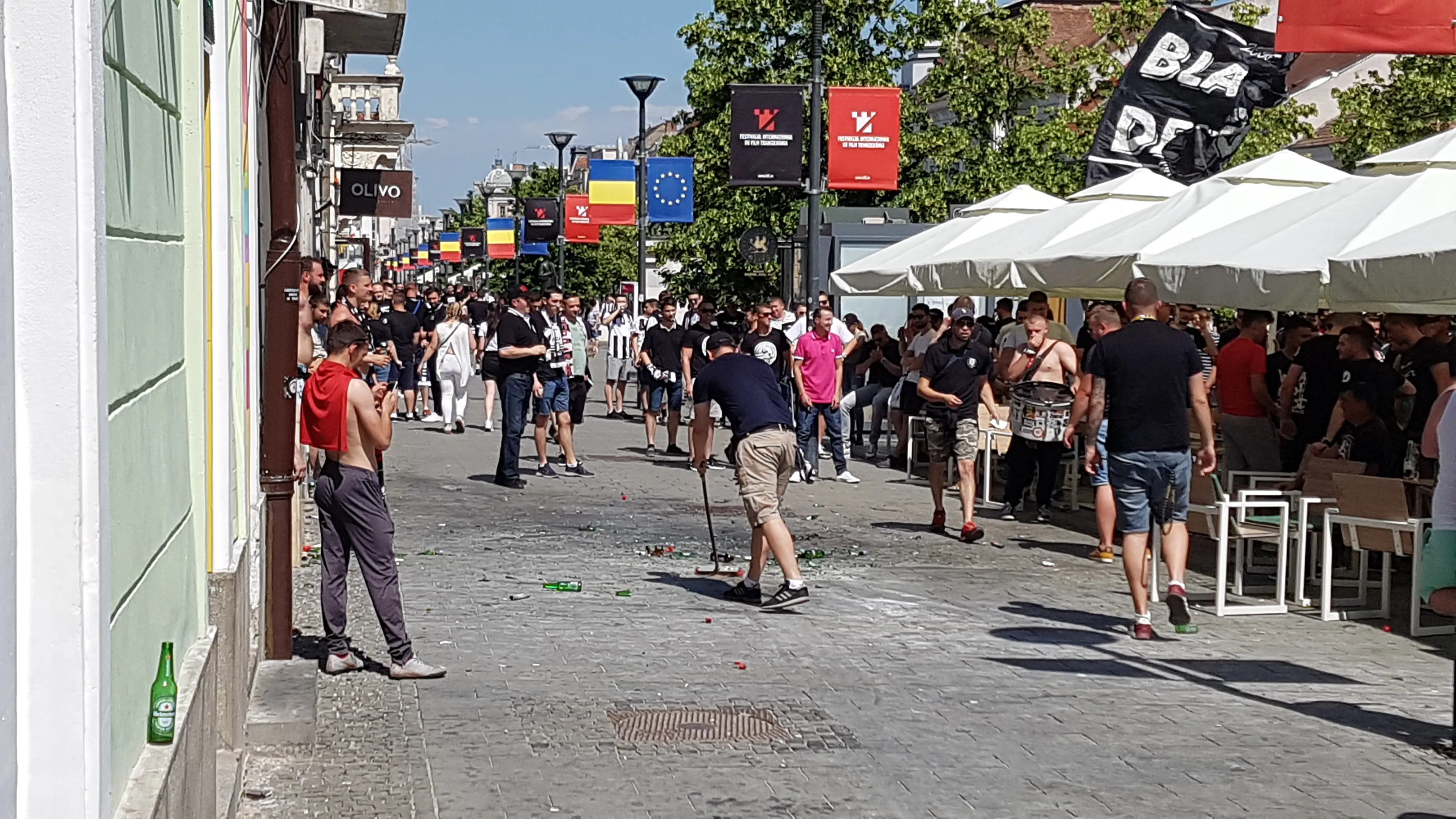 Fanii au cantat imnurile echipei si au spart sticle de bere intr-un moment de euforie. Au fost si suporteri care au venit cu maturile si au facut curat.