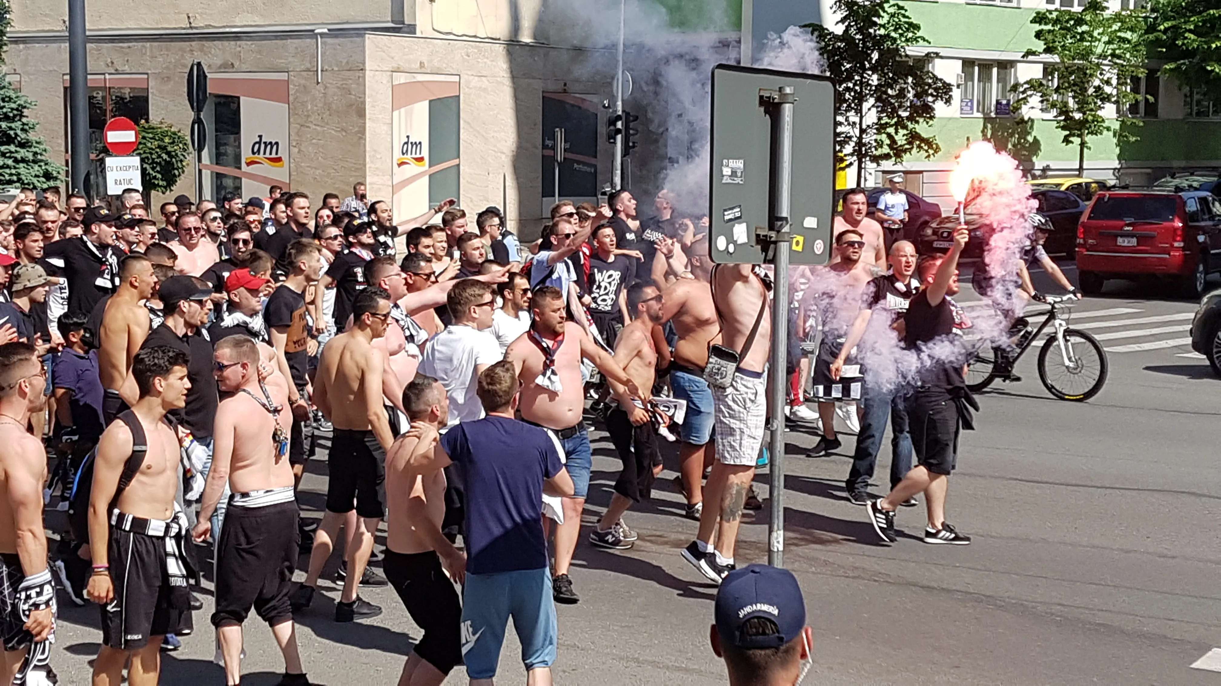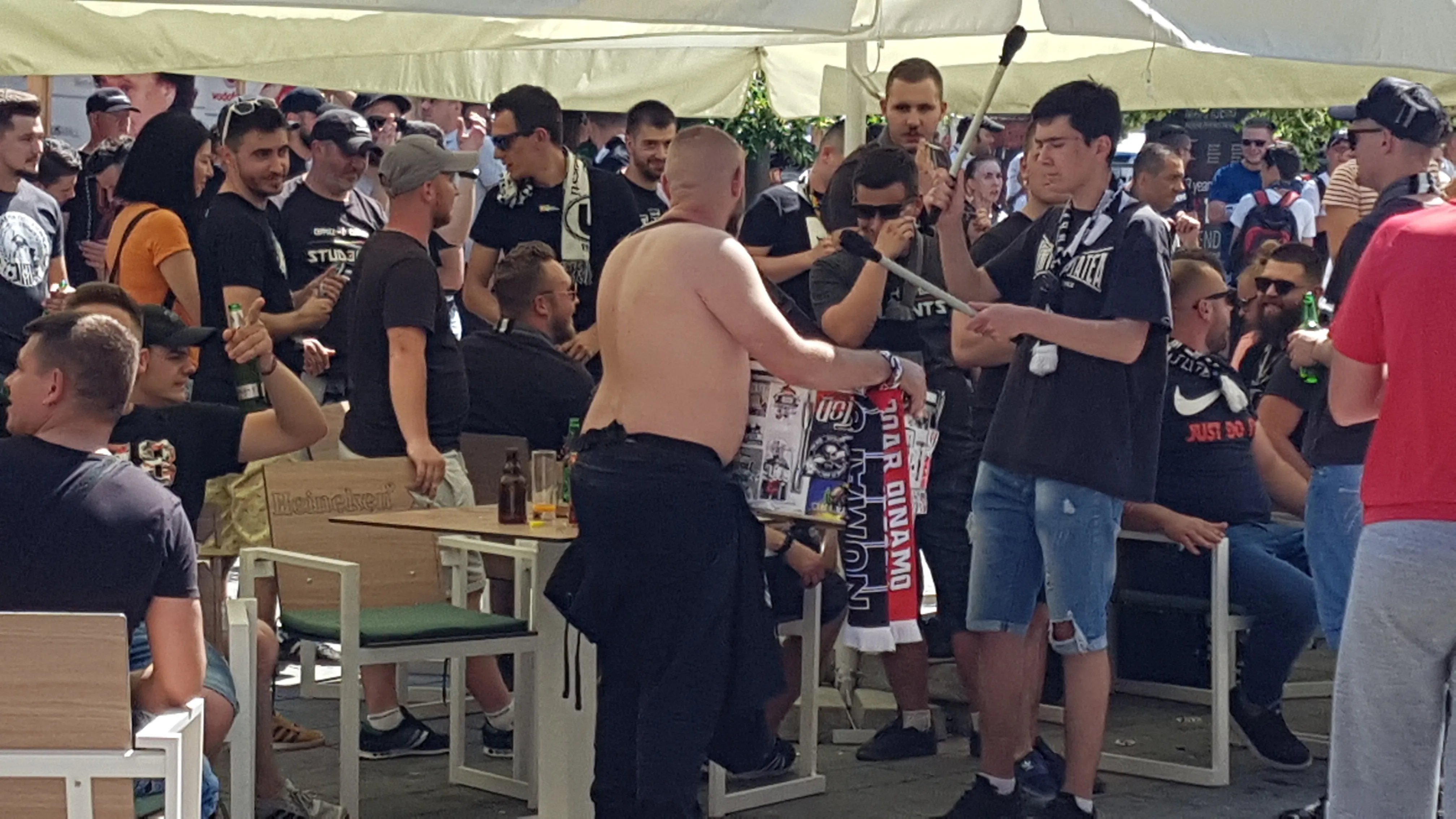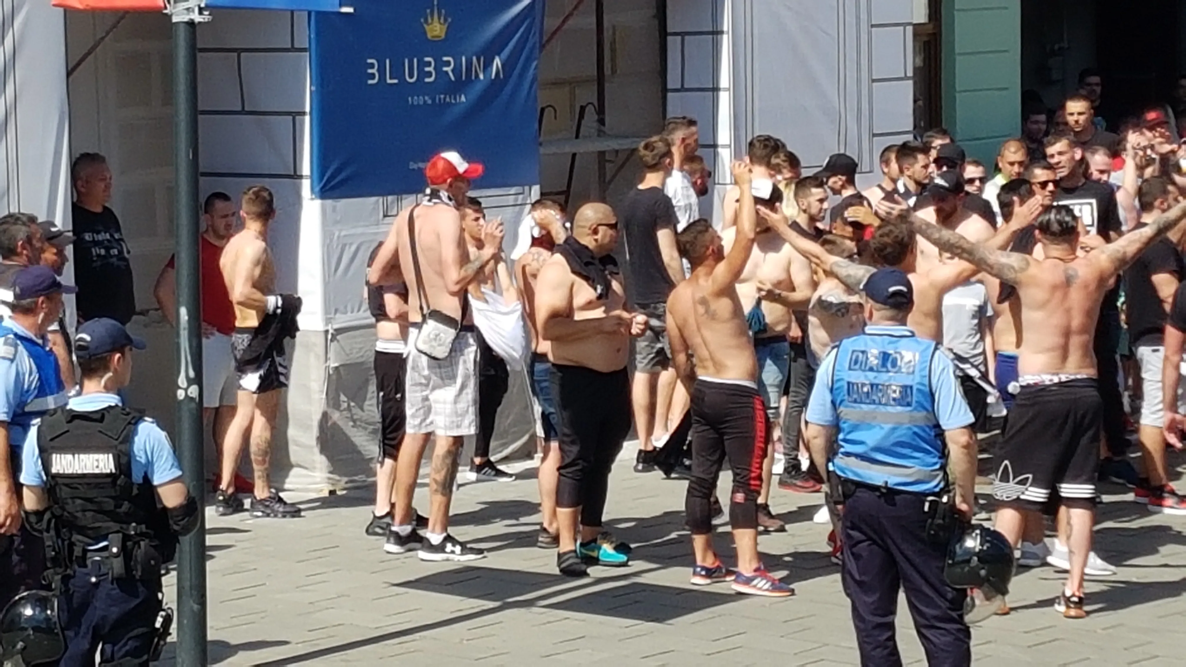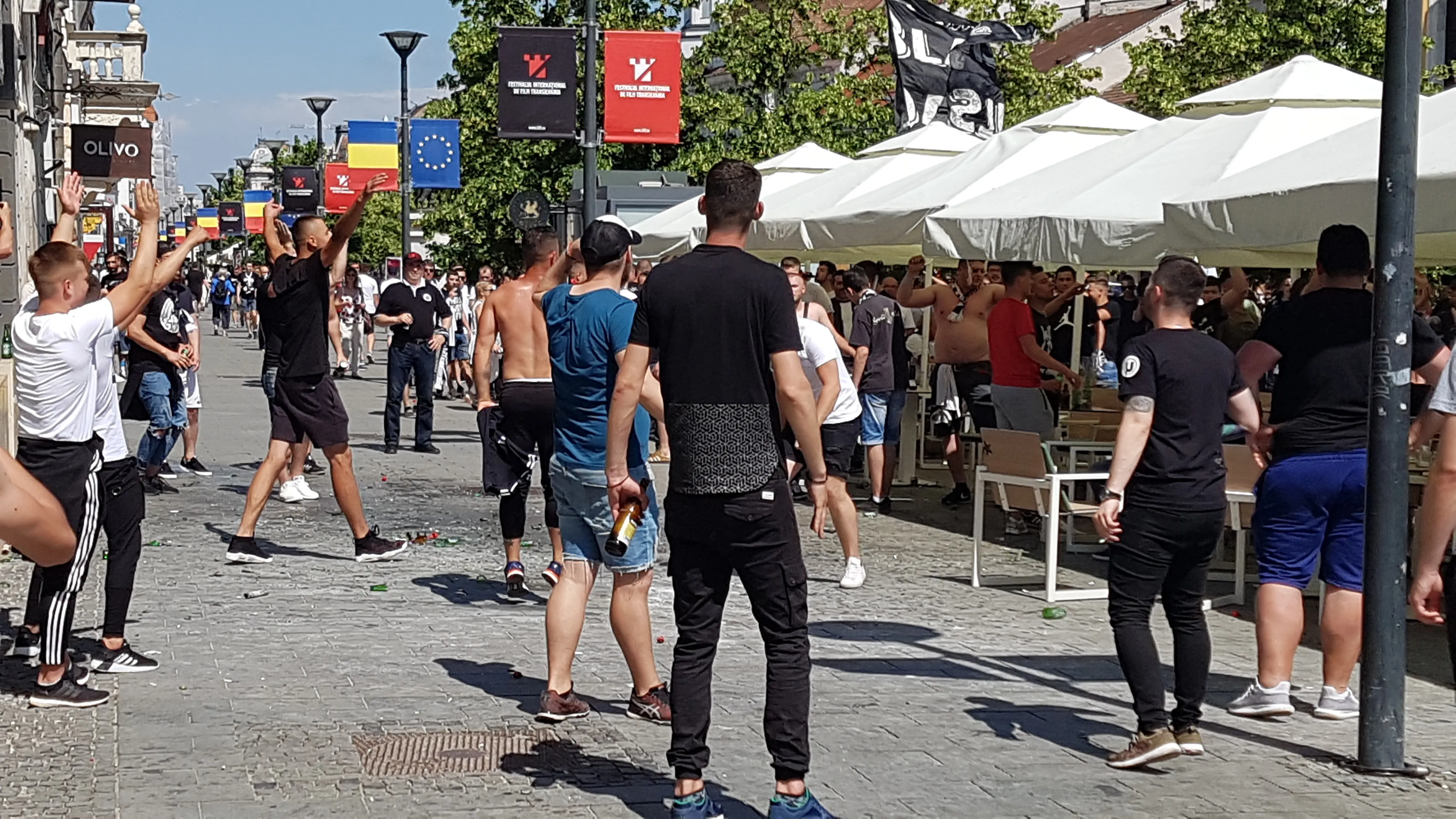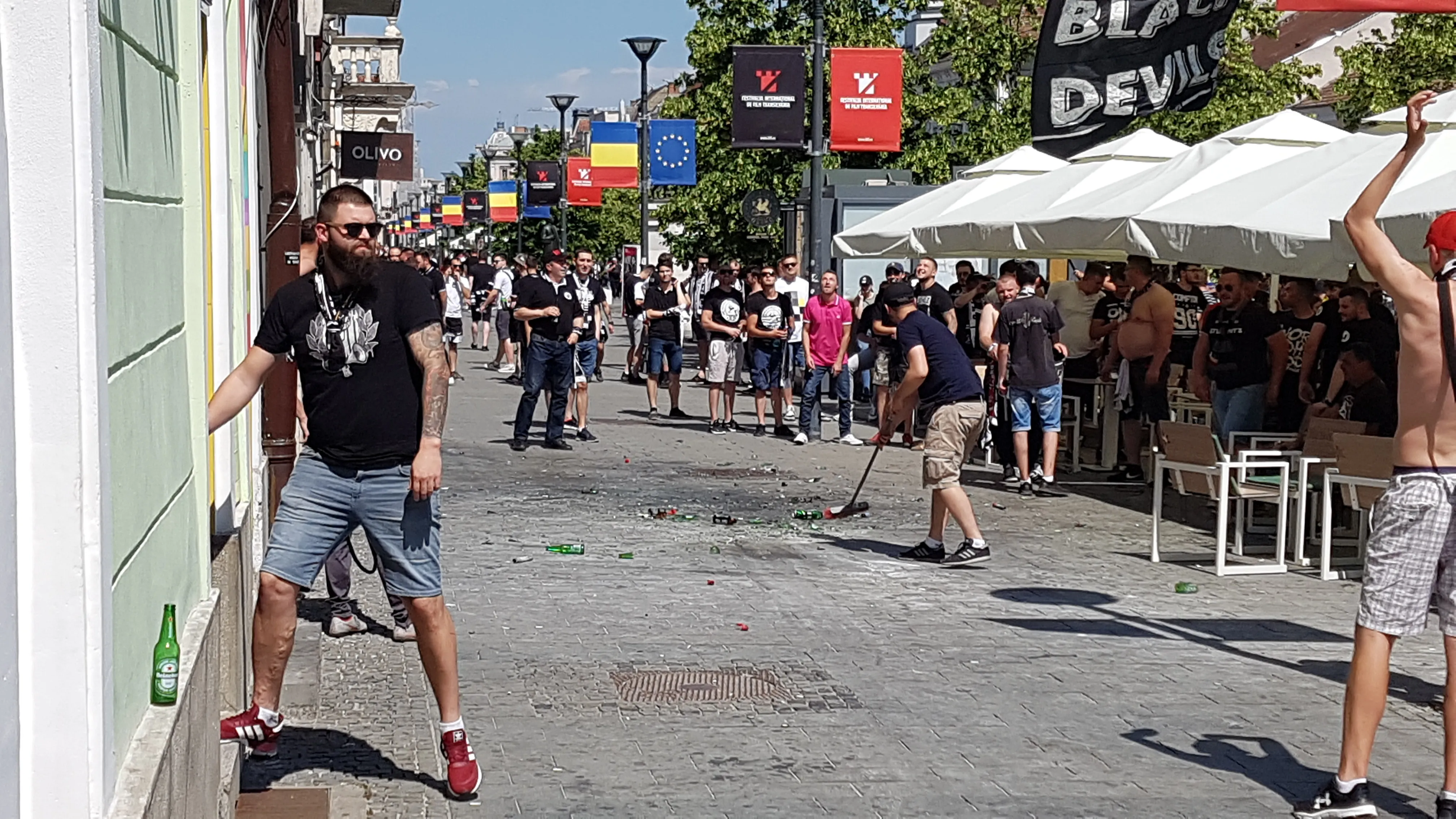 Fanii au cantat imnurile echipei si au spart sticle de bere intr-un moment de euforie. Au fost si suporteri care au venit cu maturile si au facut curat.