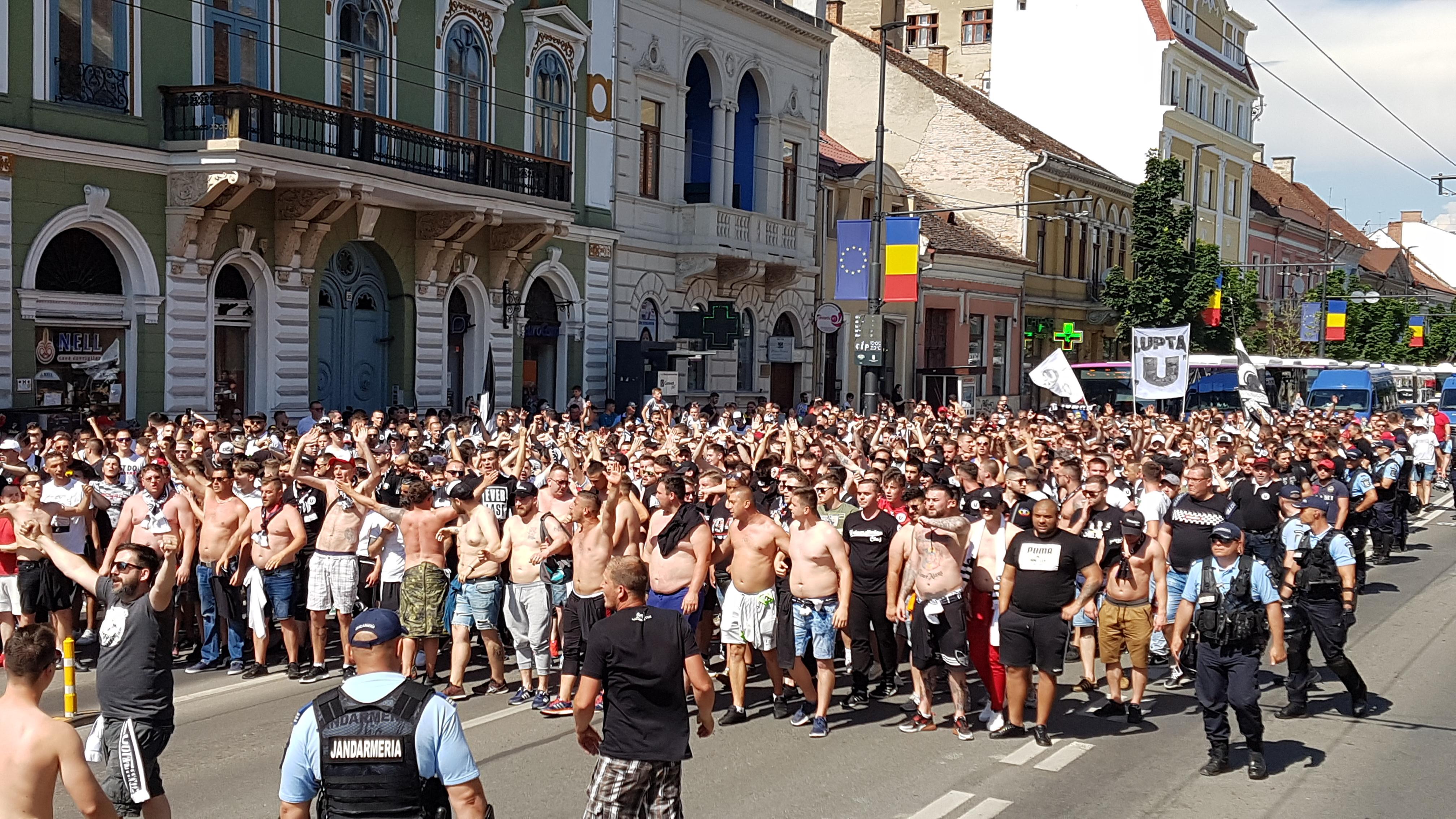 Sute de fani U Cluj s-au adunat pe Eroilor: Promovam! - VIDEO