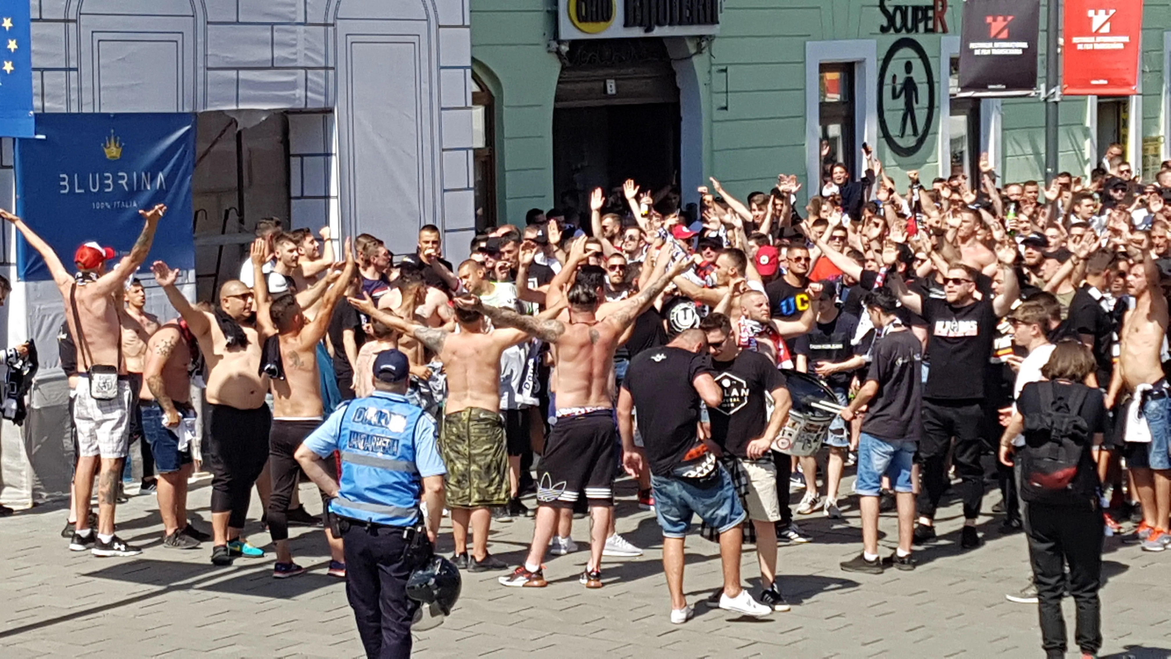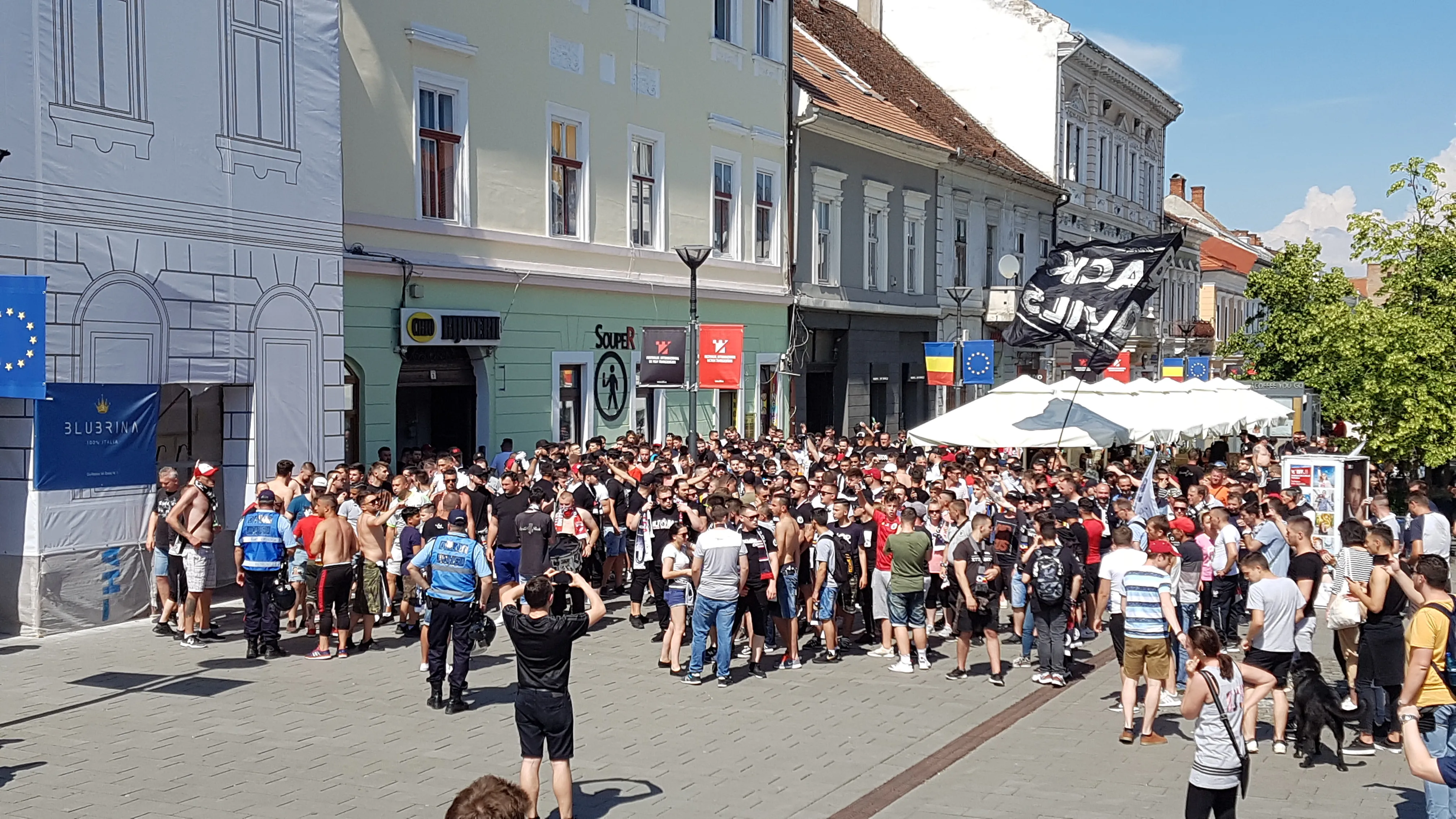 Sute de fani U Cluj s-au adunat pe Bulevardul Eroilor inainte de meciul cu FC Hermannstadt.