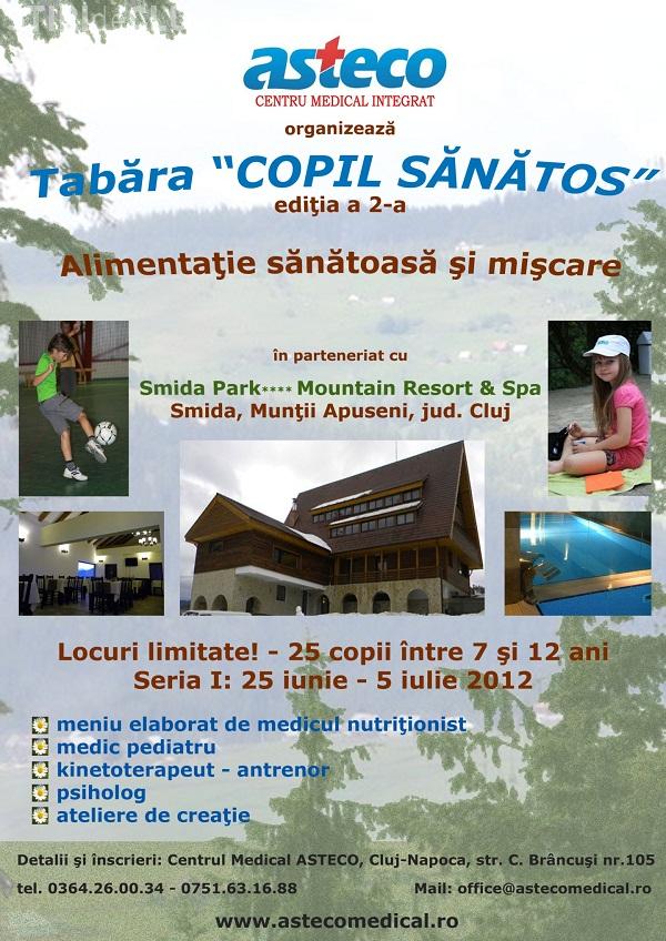 Centru Medical Asteco din Cluj-Napoca reediteaza tabara ‘Copil Sanatos’, a carei prima editie s-a desfasurat, cu 2 serii de 25 de copii, la Calimanesti-Caciulata, in 2011.