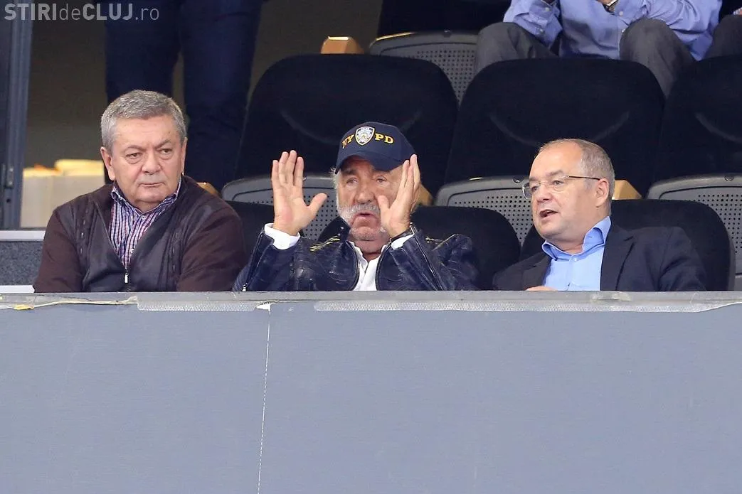 Ion Țiriac, invitat la Cluj de Ioan Rus, s-a întâlnit cu Emil Boc în tribunele BTarena, la meciul de baschet dintre U-Banca Transilvania și Panathinaikos Atena.