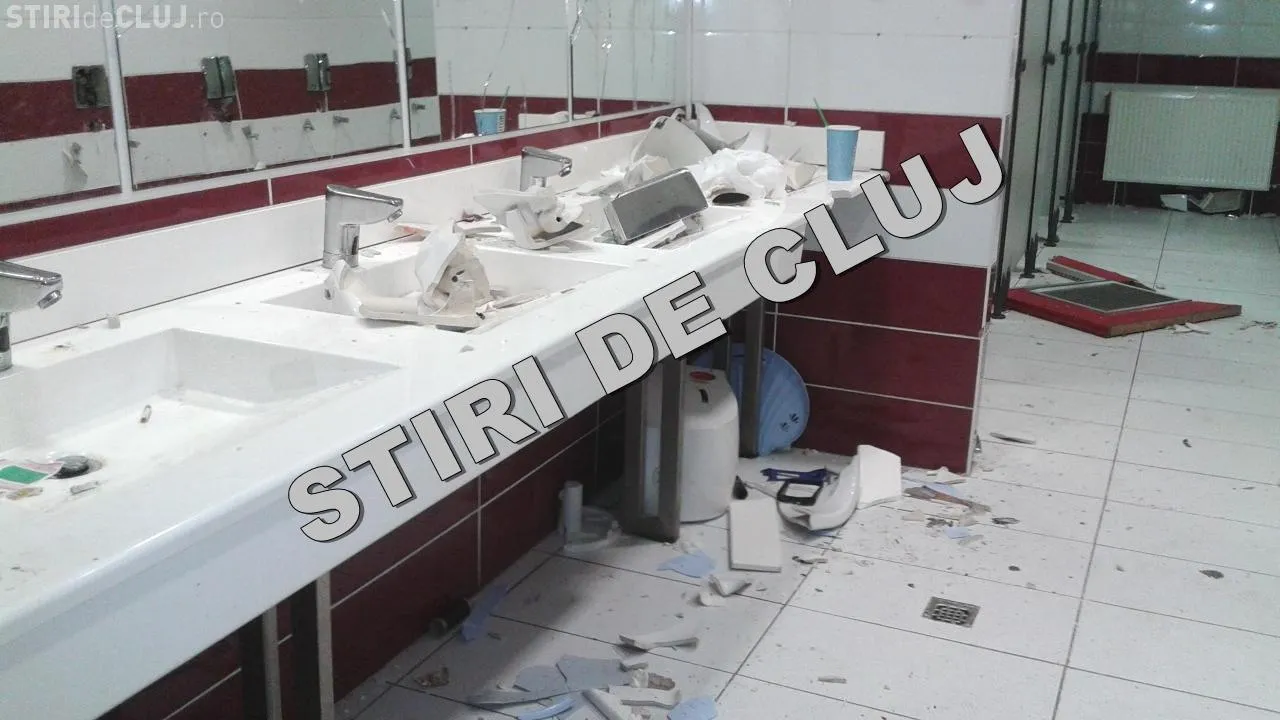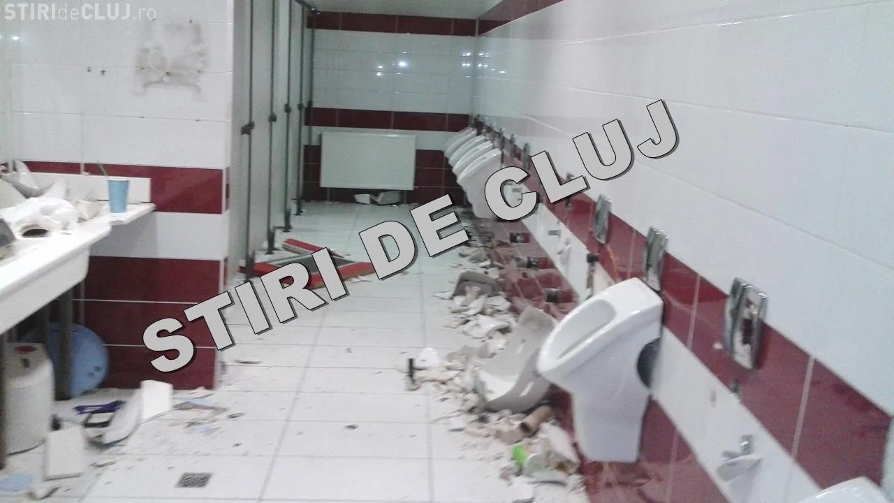 Toaletele de lângă tribuna unde stăteau suporterii U Cluj au fost devastate.
