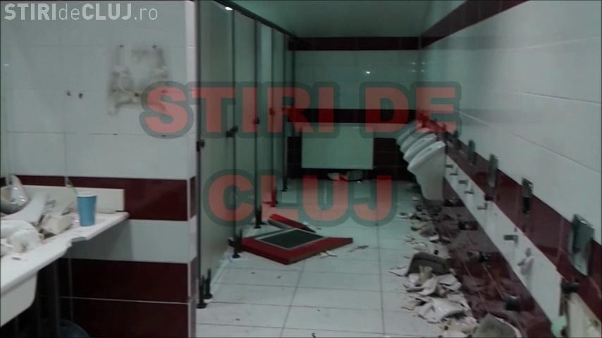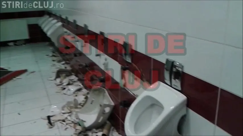 Toaletele de la stadionul CFR Cluj, devastate de suporterii U Cluj - VIDEO