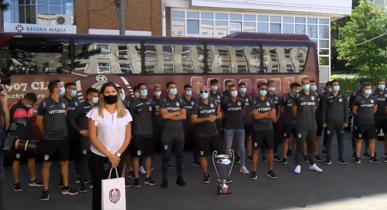 Tot lotul CFR Cluj, cu trofeul Ligii 1, s-a deplasat la Spitalul de Boli Infecțioase Cluj-Napoca pentru a le mulțumi medicilor și întregului personal medical pentru sprijin.
