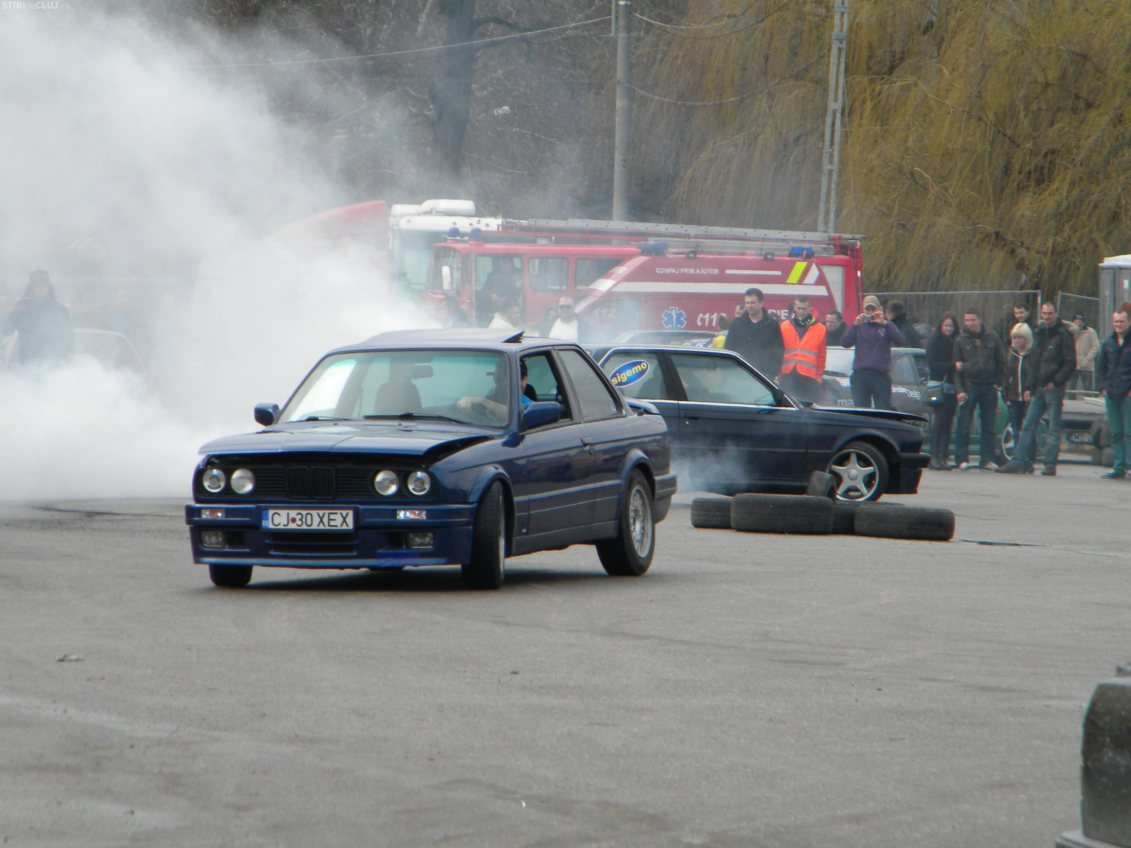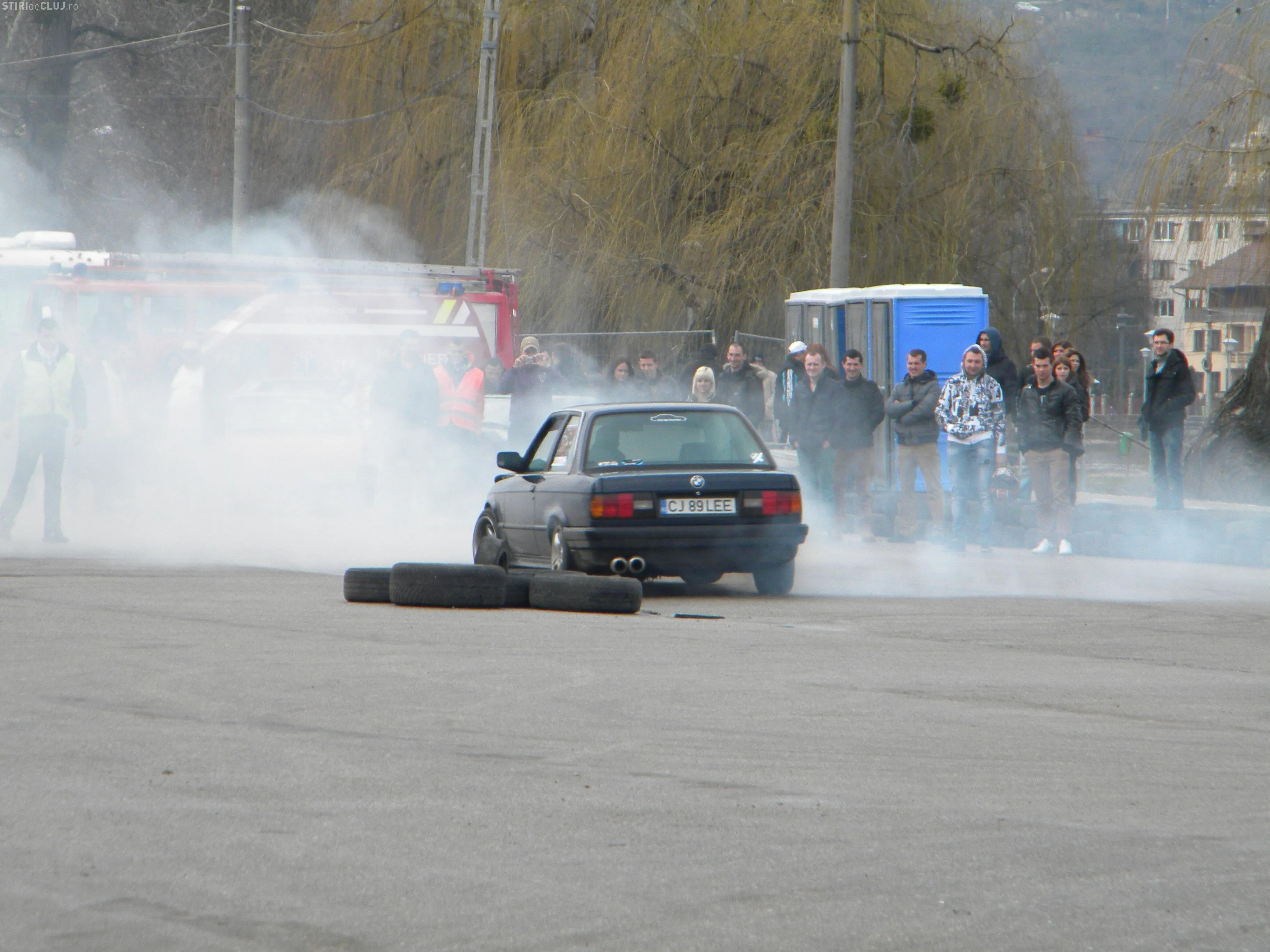 Zeci de clujeni s-au adunat sâmbătă dimineață pe Platoul Sălii Sporturilor pentru a asista la un spectacol de drift oferit de piloți experimentați.