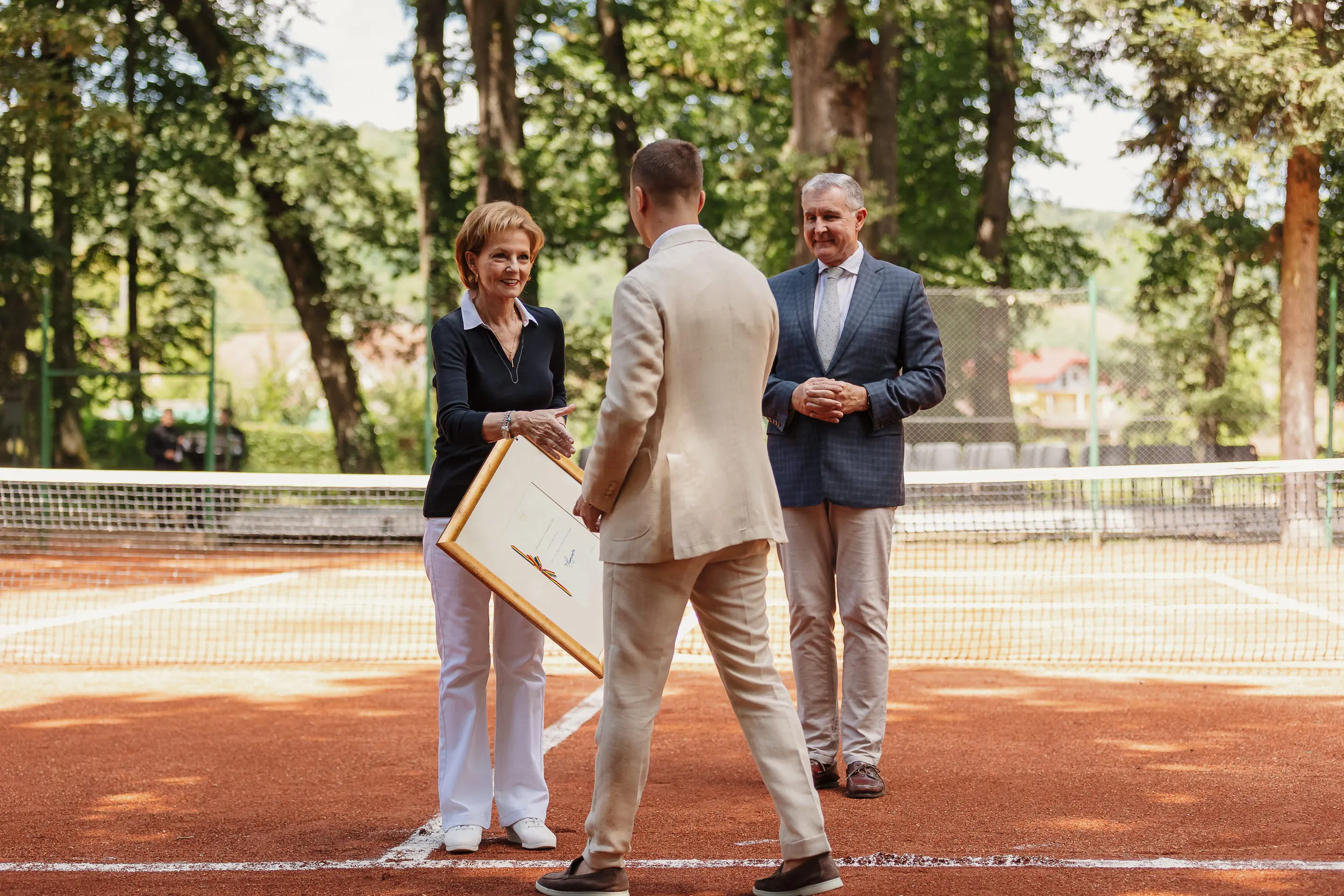 Ceremonia de conferire a Înaltului Patronaj al Majestății Sale Margareta a fost urmată de un simbolic schimb de mingi pe Terenul de Tenis din Parcul Regal între fostul mare tenismen Horia Tecău și directorul Transylvania Open, Patrick Ciorcilă. Lor li s-au alăturat, pentru un scurt joc de mingi, Horea Ciorcilă, președintele Banca Transilvania și Bogdan Nițescu, fostul antrenor al lui Patrick Ciorcilă. A fost primul meci jucat pe terenul de tenis de la Săvârșin după anul 1945, când era folosit de Majestatea Sa Regele Mihai. În cinstea evenimentului și în amintirea Regelui, pasionat de tenis și practicant al acestui sport, suprafața de joc a fost recondiționată de echipa logistică Transylvania Open în luna iulie a acestui an, utilizându-se nu mai puțin de 27 de tone de zgură.