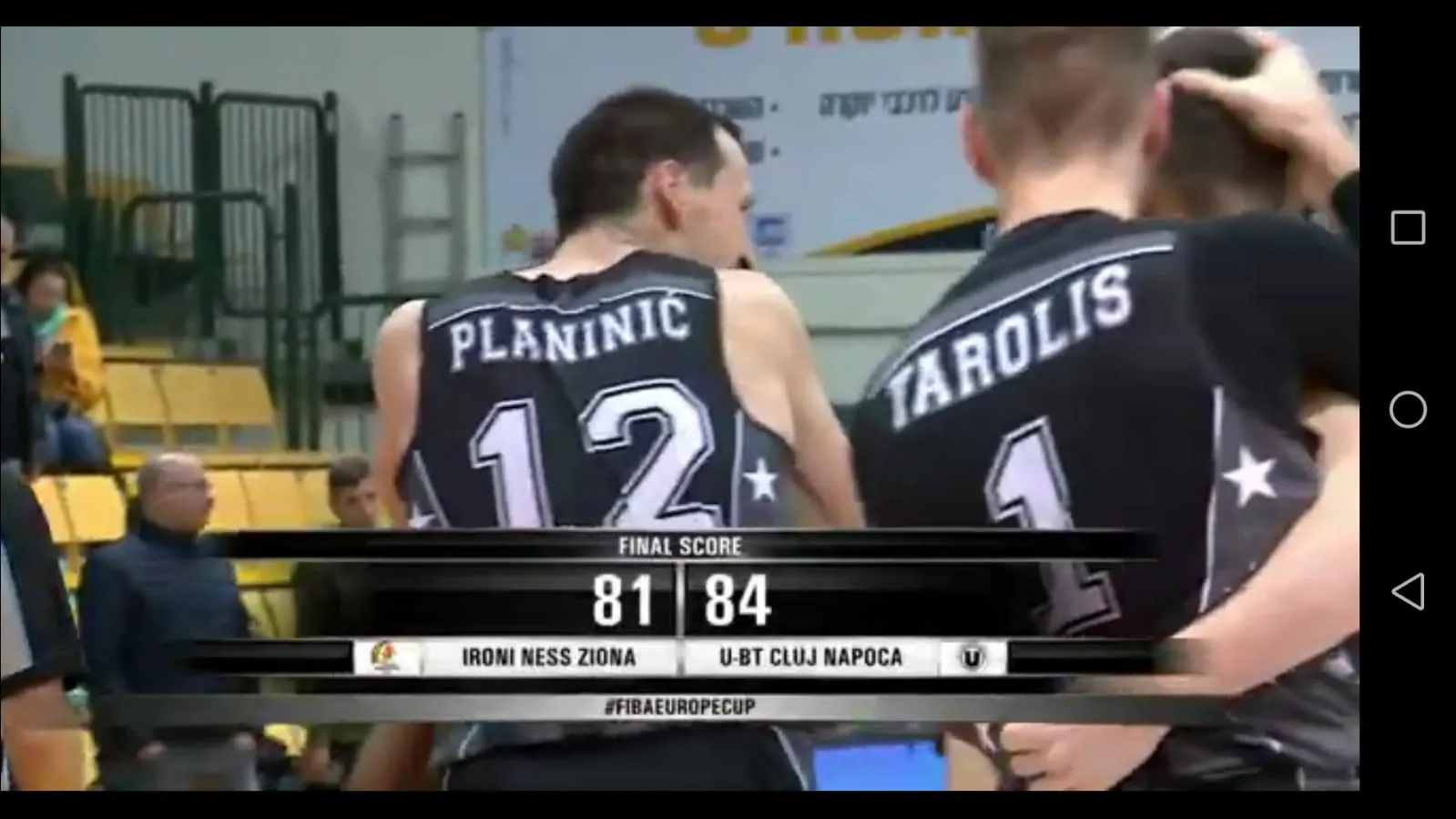 Clujenii i-au învins pe jucătorii din Israel cu scorul 84-81. Primul sfert a fost condus de clujeni, terminânduse cu scorul 21-16, dar apoi gazdele au revenit și s-au impus. Ultimele două sferturi au fost câștigate de clujeni, dar la mare bătaie. Finalul a fost dramatic. Israelienii s-au desprins la scorul de 81-78. Planinić a transformat două aruncări libere, iar clujenii s-au dus în avantaj, iar apoi Kerron a obținut un fault foarte important și a marcat pentru U Banca Transilvania.