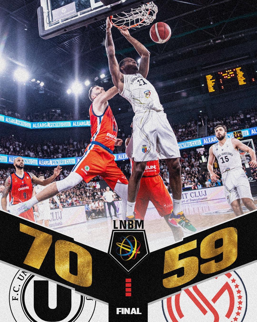 U Banca Transilvania a învins pe CSM Oradea, în Sala Polivalentă din Cluj-Napoca, scor 70 - 59, în meciul șase al finalei.