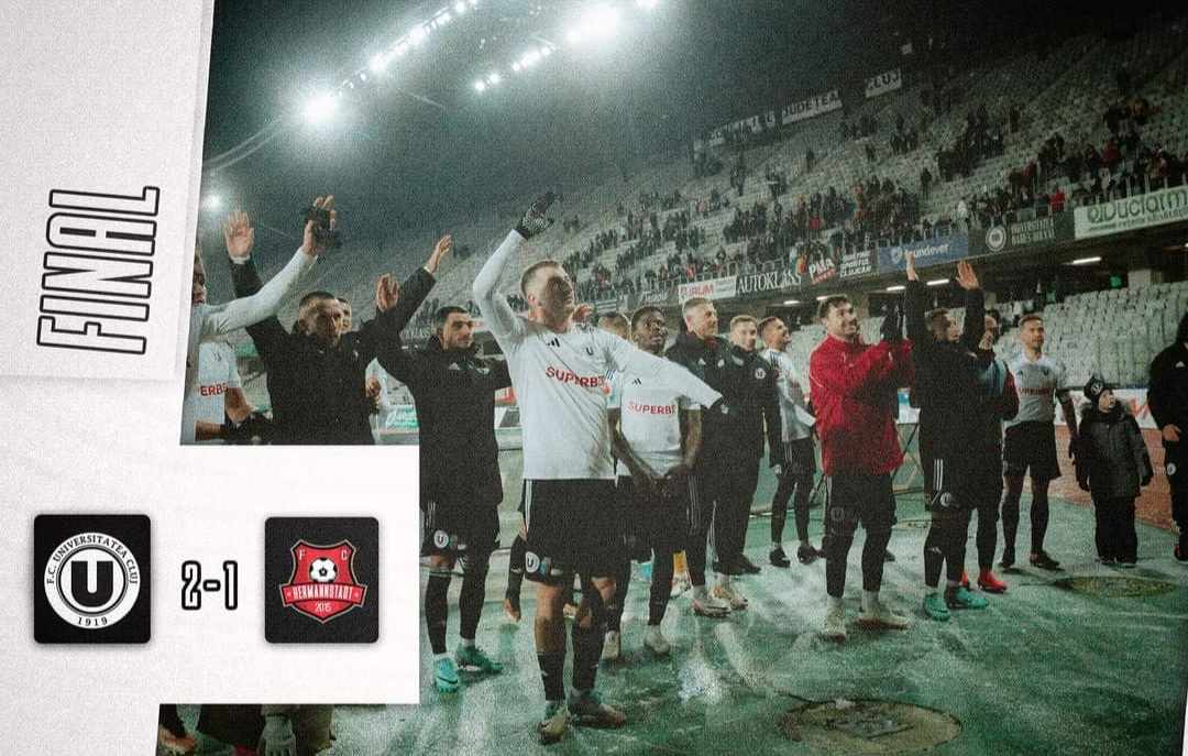 Universitatea Cluj a învins sâmbătă, pe teren propriu, scor 2-1, formaţia FC Hermannstadt, şi a urcat pe loc de play-off în Superligă.