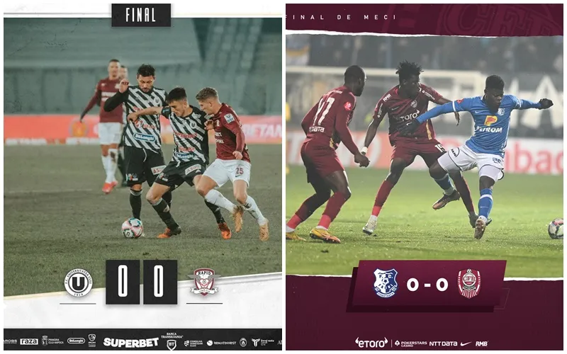 CFR Cluj a remizat cu Farul Constanța, deși a avut 87 de minute un om în plus. De asemenea, și U Cluj a remizat cu Rapid București.