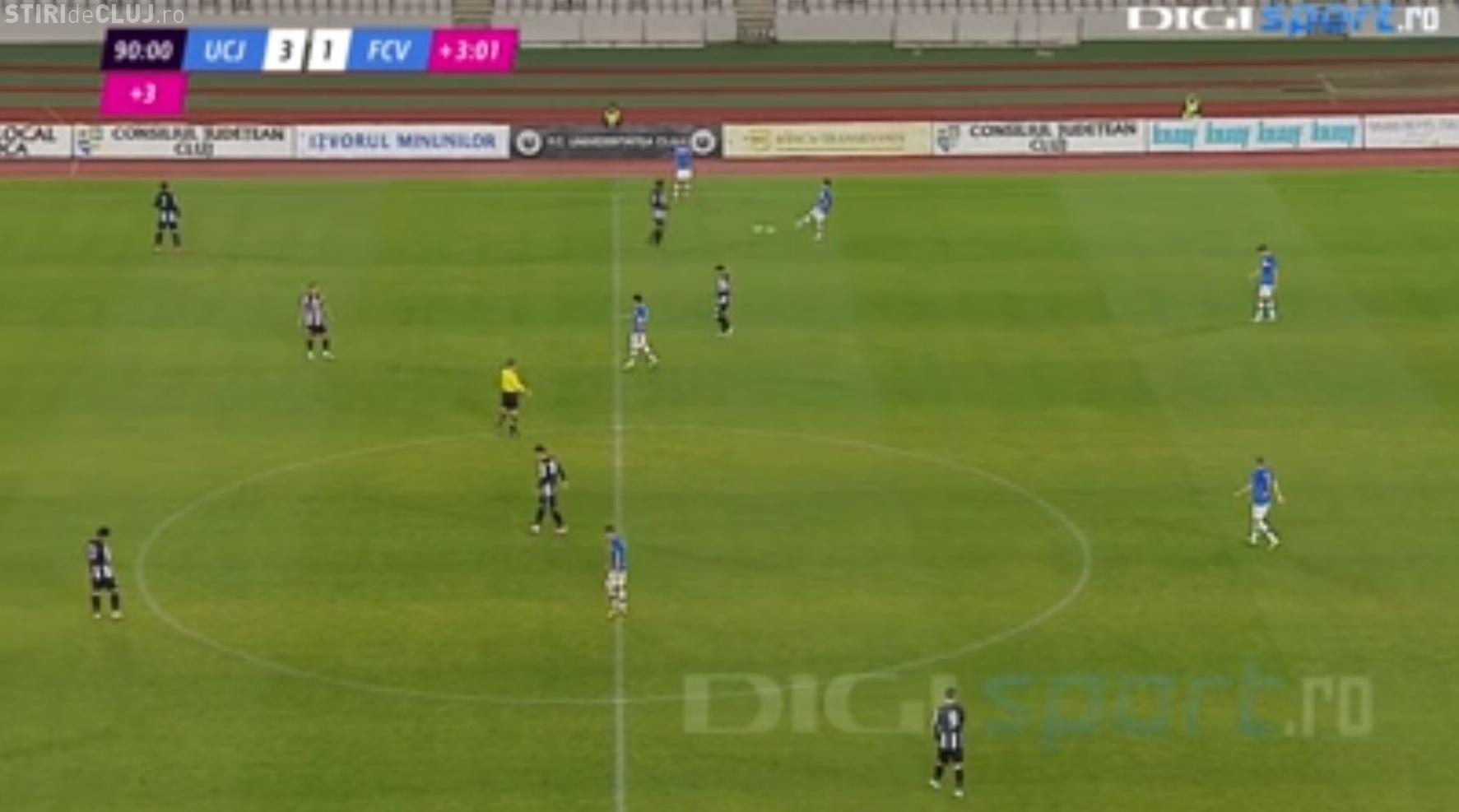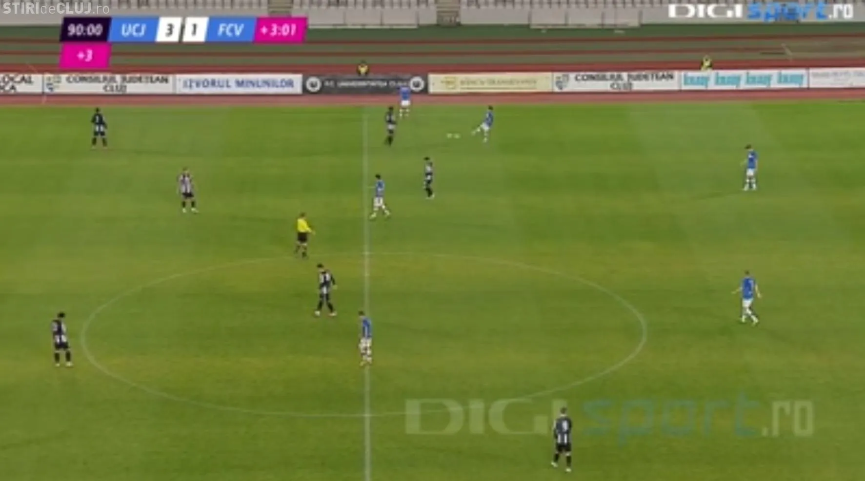 Golul al treilea pentru U Cluj a fost marcat în prelungiri. Lemnaru l-a ”servit” pe Borza, iar acesta a înscris în minutul 90+2.