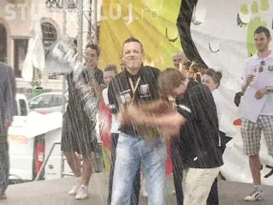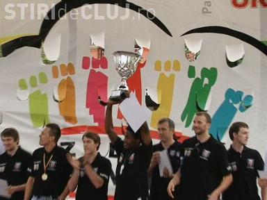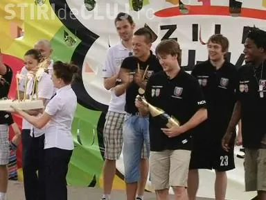 Campionii la baschet de la U Mobitelco au ridicat trofeul in aer in Piata Unirii in fata suporterilor. Chiar daca ploaia a scurtat sarbatoarea, jucatorii au apucat sa deschida o sampanie.