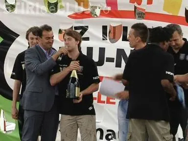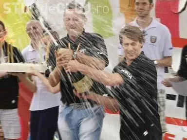 Americanul cu maini de aur afost lasat sa deschisa si sticla de sampanie pentru a uda trofeul, dar nu s-a descurcat la fel de bine ca si in teren. A fost nevoie de ajutorul lui Cuic si Kyndall Dykes, care i-au aratat americanului cum se desface sticla.