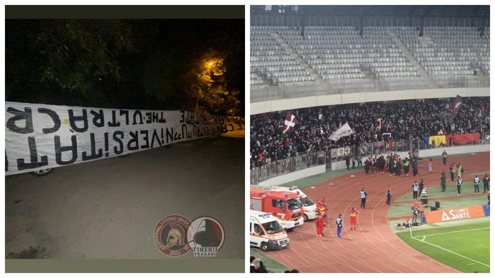 Suporterii CFR Cluj au făcut și presiuni înaintea meciului, pentru a primi acces la peluza superioară, destinată oaspeților, dar nu au avut câștig de cauză, pentru că nu au mai vut să stea în partea de jos. Cererea lor a fost respinsă, iar ”frânarii” se chinuie acum să umple inelul inferior al peluzei, lucru care pare a fi dificil pentru micuța, dar dura galerie feroviară.