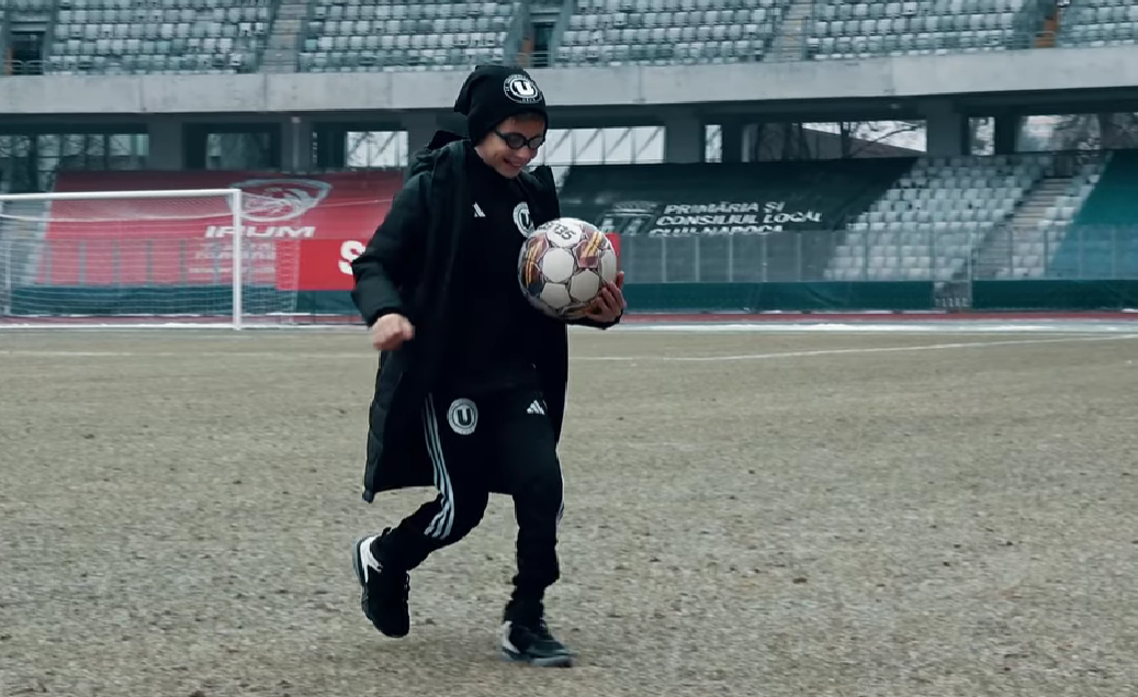 Un băiețel de 9 ani, suporter al Universității Cluj, este prezent trup și suflet la orice meci al echipei favorite, în ciuda deficiențelor de vedere -VIDEO