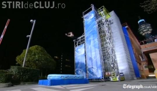 Un bărbat a sărit de la 11 metri într-un bazin gonflabil de 30 de centimetri VIDEO