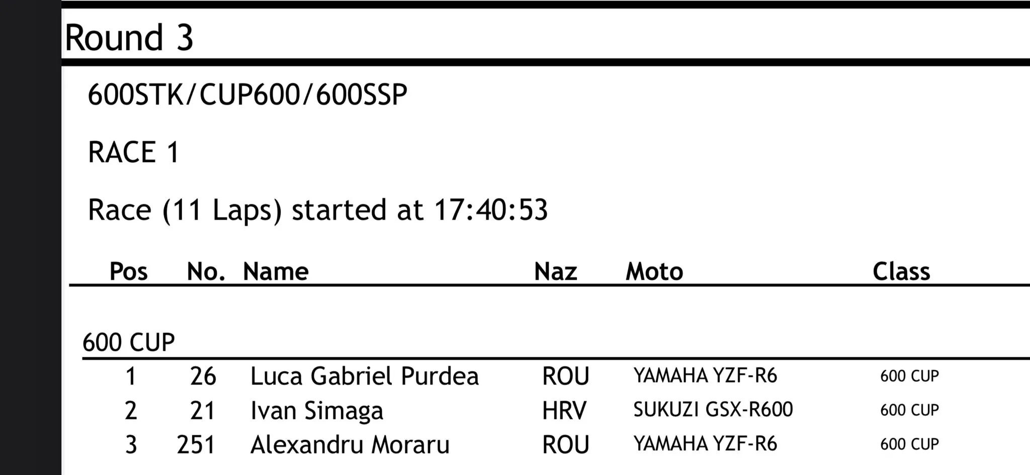 Luca Purdea este membru al clubului ACSRU București și a luat locul 3 la Campionatul European și locul 1 la Est-European BMU și Campionatul Național. La Brno, clujeanul a concurat pe o Yamaha YZF-R6 și a terminat pe locul 4 la juniori.