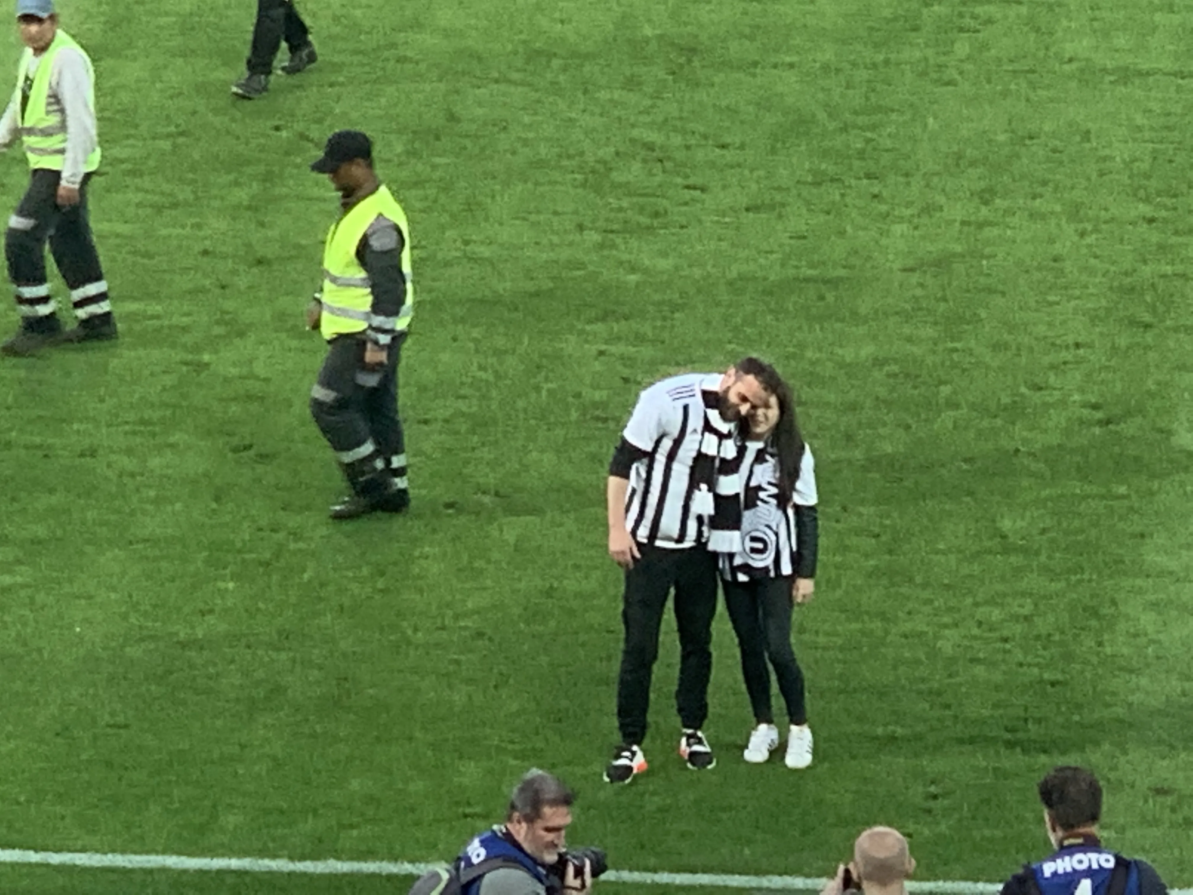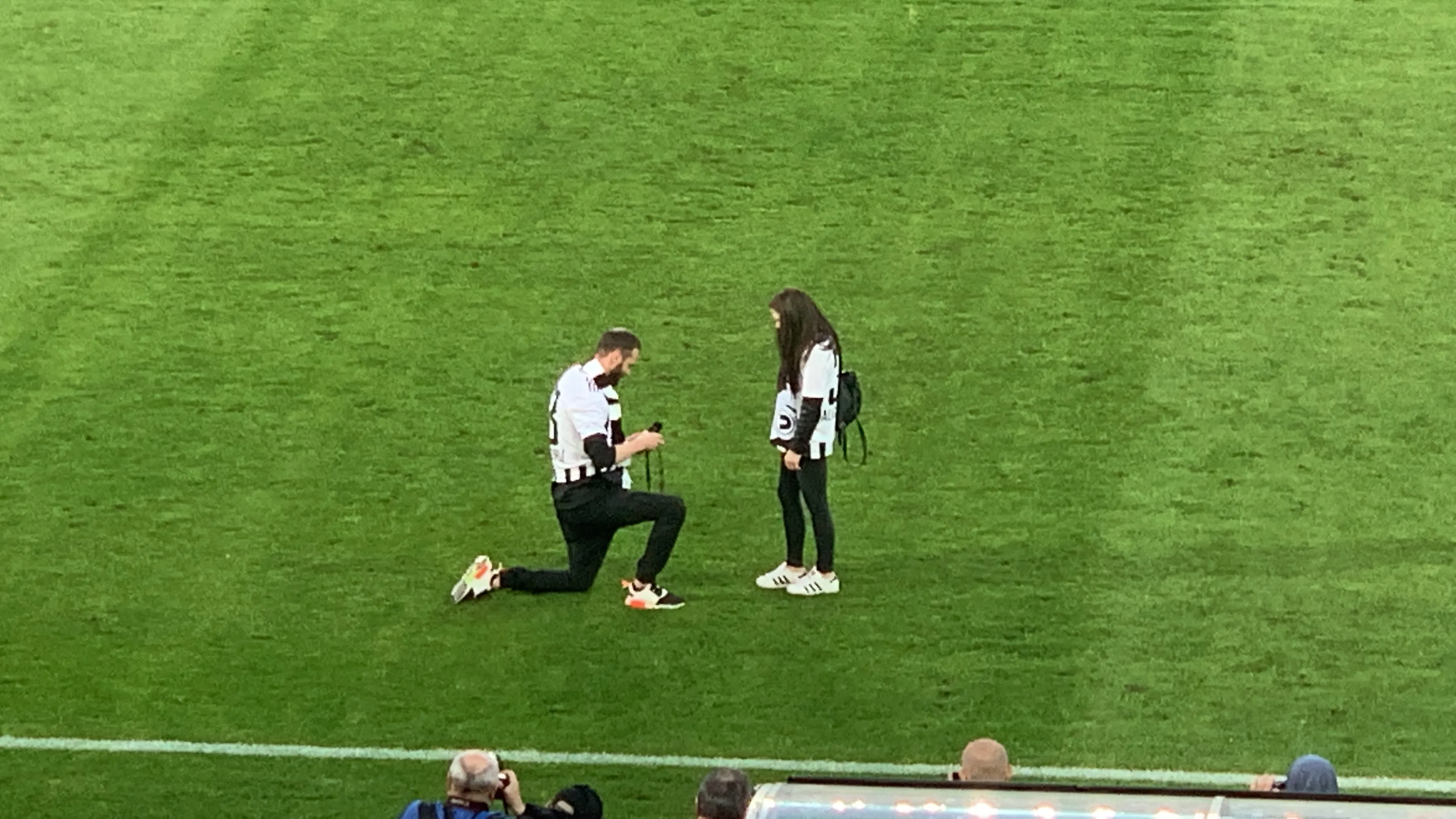 Un fan U Cluj si-a cerut in căsătorie logodnica pe “templul” Cluj Arena - VIDEO SI FOTO