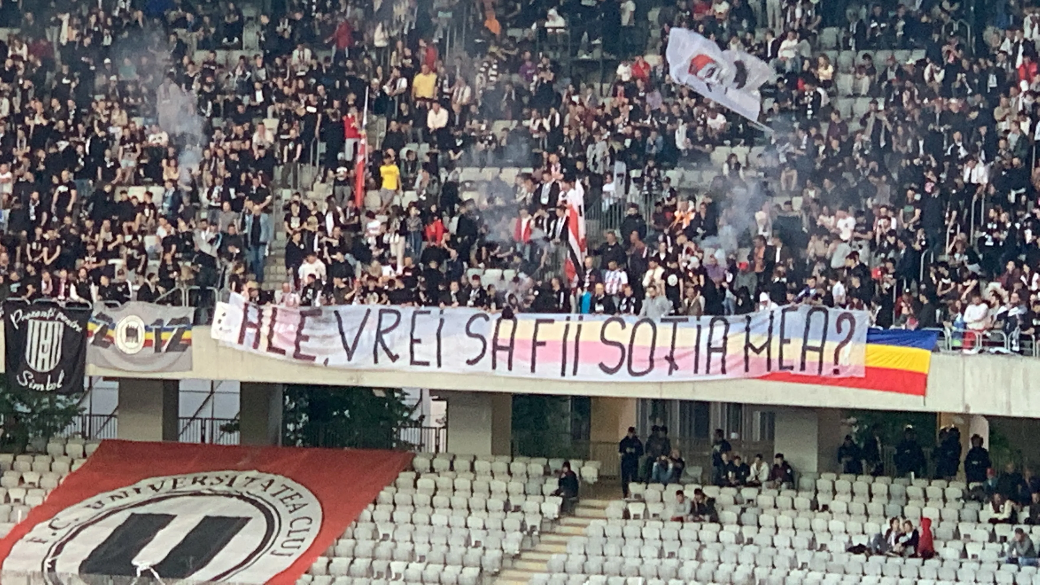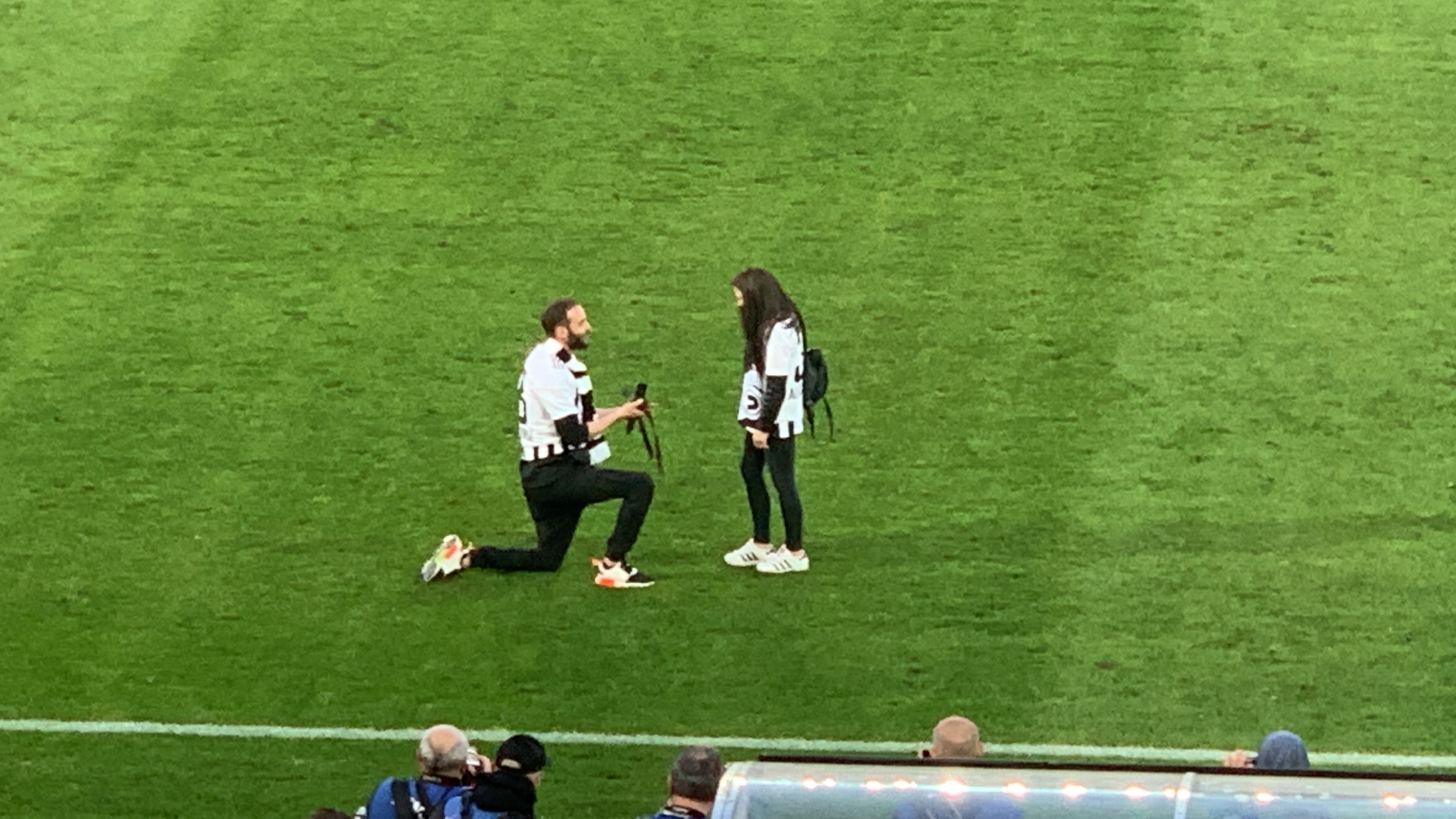 Un fan U Cluj si-a cerut in căsătorie logodnica, marți, 10 mai, în pauza meciului cu Hermannstadt Sibiu.