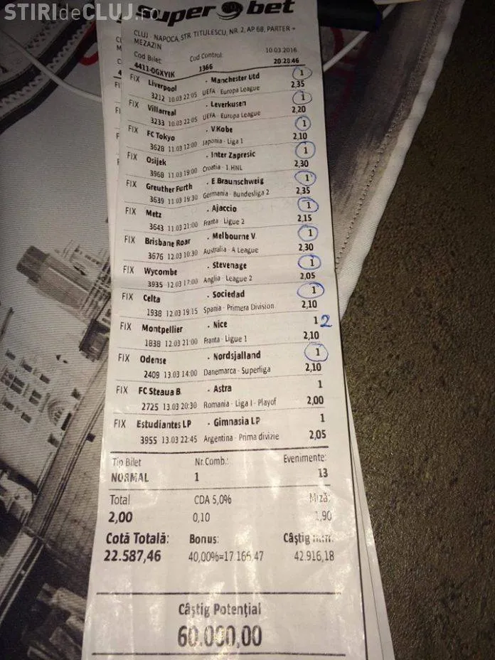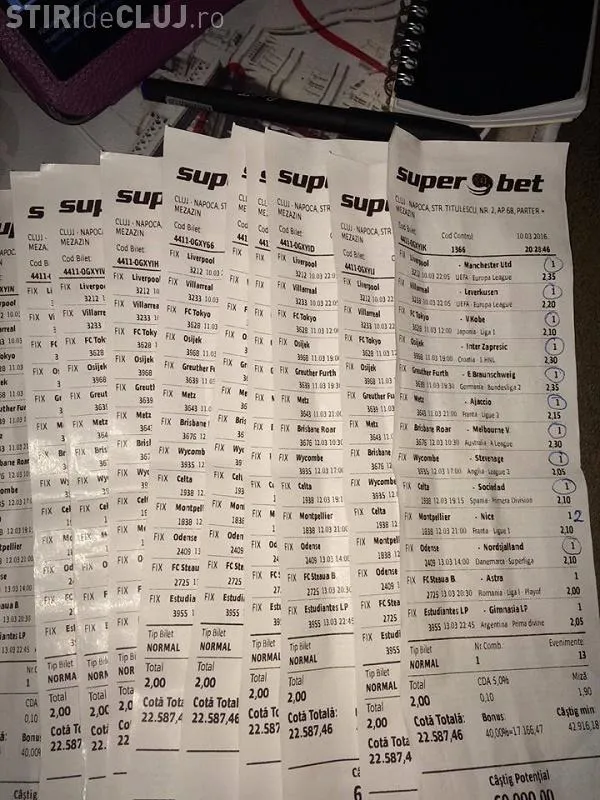 Un parior din Cluj era să ducă în faliment casa de pariuri, dar a avut ghinion la un singur meci.