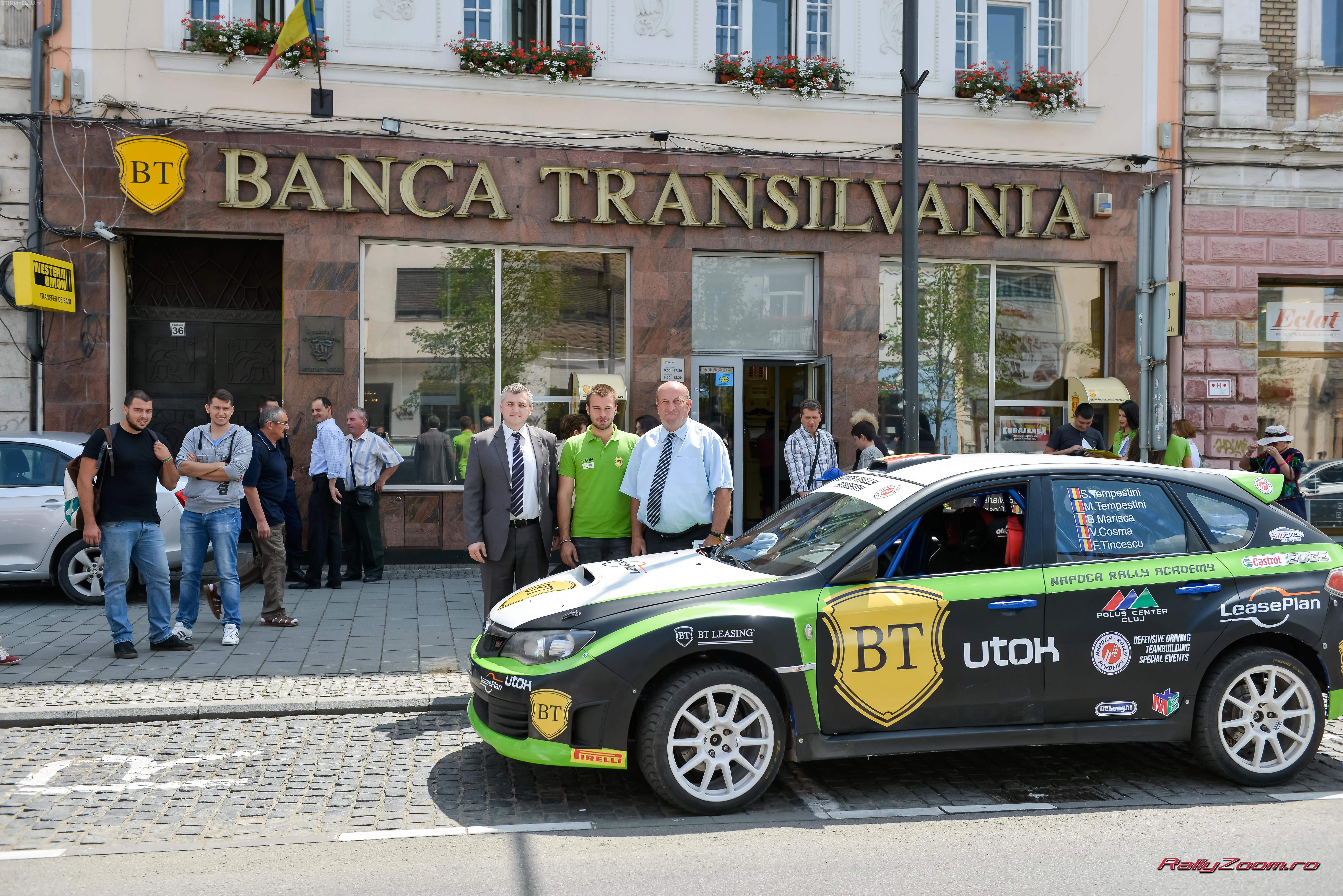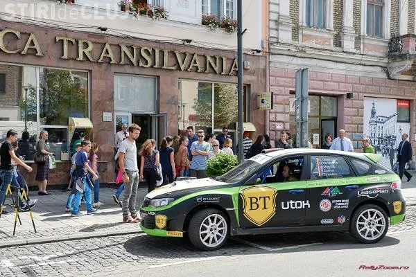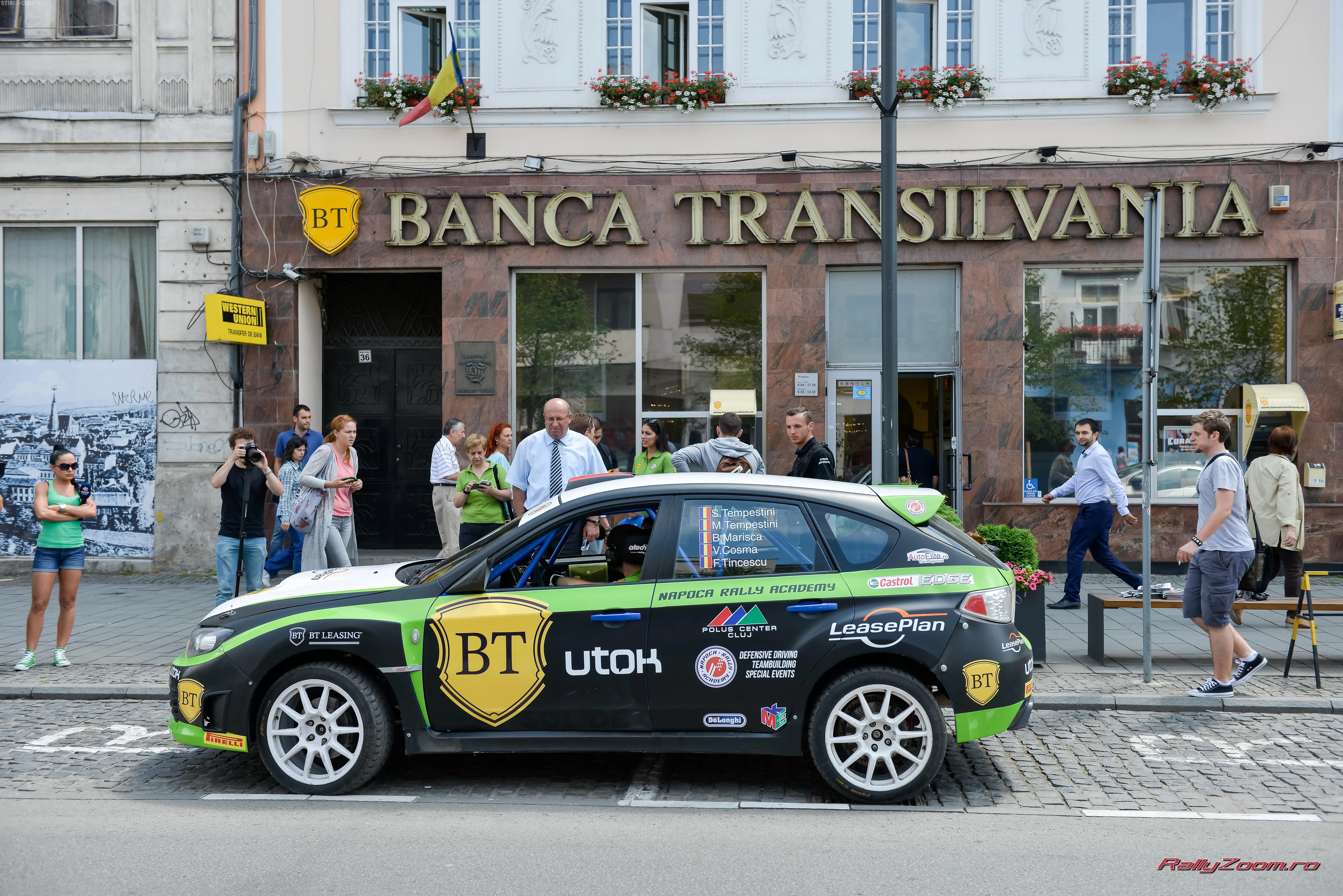 Clientii Bancii Transilvania au avut parte de o experienta inedita astazi, 14 iulie 2015 la Sucursala Eroilor din Cluj-Napoca: serviciul de rally taxi prin care pilotul Simone Tempestini, liderul Campionatului National de Raliuri i-a transportat la destinatii cu Subaru R4 al Napoca Rally Academy.