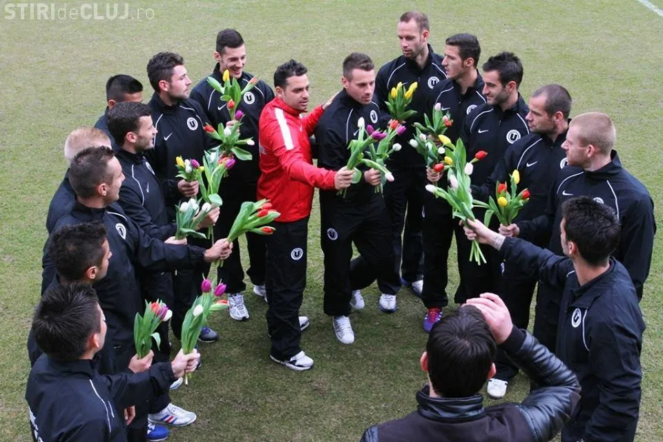 Universitatea Cluj a pregătit un afiș de 8 Martie, în care, toți jucătorii, le oferă flori doamnelor.