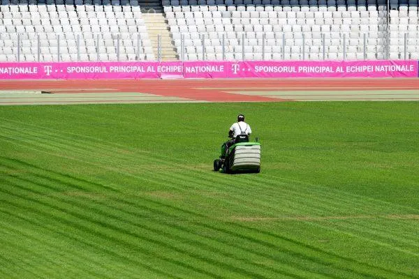 Cu 2 zile înainte de meciul România și Muntenegru, se muncește intens pentru a reface gazonul, dar încă mai sunt locuri unde iarba este foarte rară: la centrul terenului și la poarta dinspre peluza 2, între linia careului mare și tușă, scrie gsp.ro.