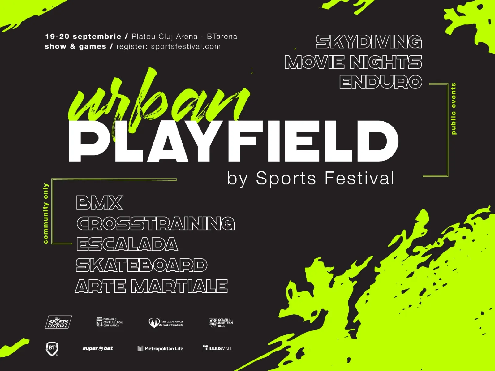 Urban PLAYFIELD este un eveniment Sports Festival organizat cu sprijinul Primăriei Cluj-Napoca și al Consiliului Local, Cluj Arena, BT Arena și al Consiliului Județean Cluj.