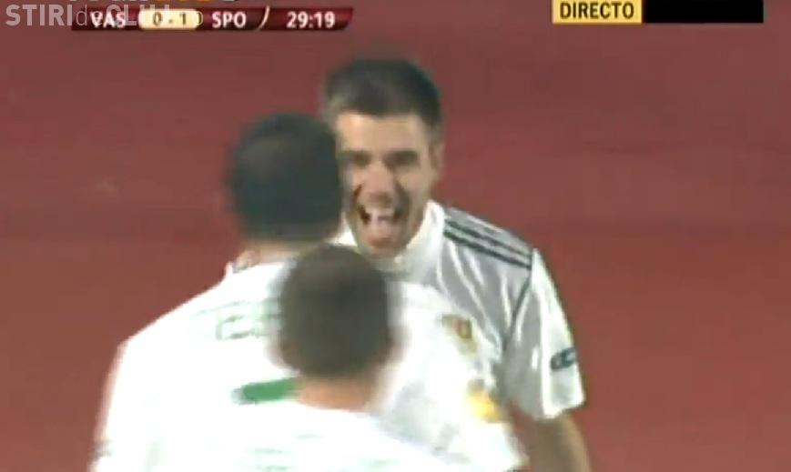 Denis Zmeu a inscris dupa o faza confuza in careul celor de la Sporting. Sanmartean a executat o lovitura de la colt si Zmeu a sutat in Pereirinha, care a deviat mingea in poarta.. Sporting a incercat sa dea o replica, dar nu a reusit nici macar in repriza secunda.