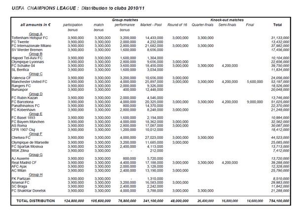 Clujenii au ajuns la o cifra atat de mare datorita cotei de piata, mai mare si ca unele cluburi titrate din Europa cum sunt Sahtior Donetk, Lyon si Valencia. La acest indicator, CFR Cluj a incasat 10.012.000 de euro.