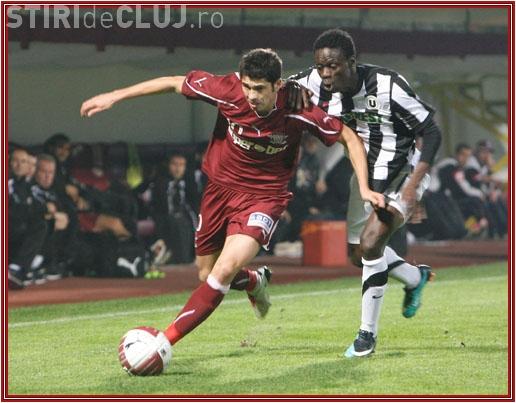 Herea deschide scorul in minutul 27 al partidei Universitatea Cluj-Rapid.