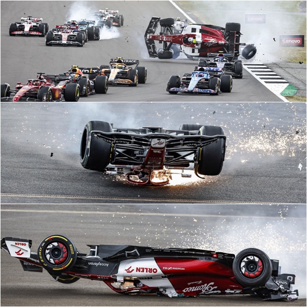 Pilotul chinez a scăpat ca prin minune, după ce mașina sa a fost catapultată pur și simplu, s-a învârtit în aer de câteva ori, iar aterizarea a fost cum nu se puteamai rău, spre îngrijorarea tuturor. Monopostul lui Zhou Guanyu a fost făcut pur și simplu praf.
